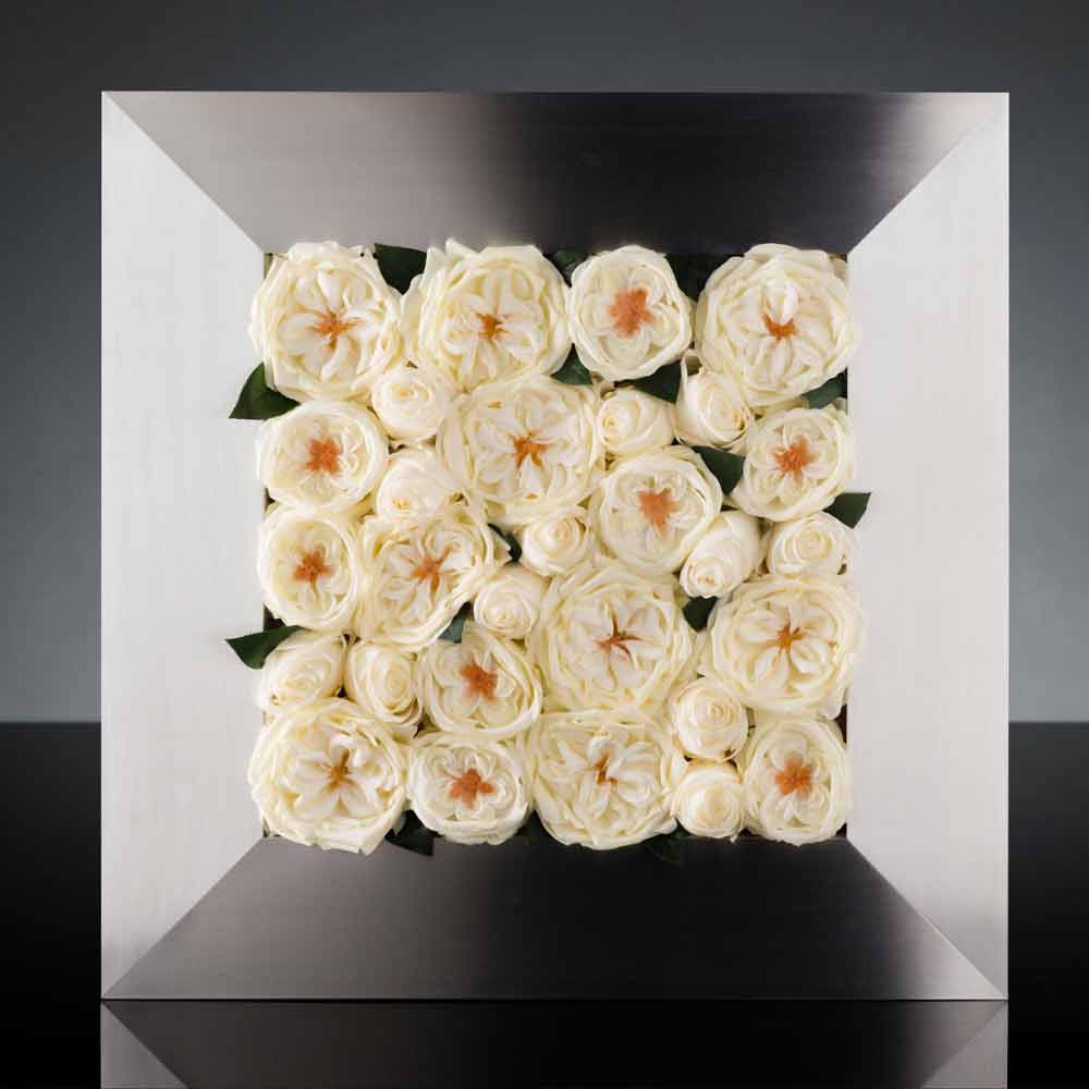 Quadro de parede moderno feito na Itália em metal cromado e rosas brancas artificiais . Uma ideia de mobiliário que surge do encontro inusitado entre as belezas da natureza e um design moderno, valorizando o encanto dos dois mundos de forma exclusiva. O que nasce é um complemento decorativo com uma alma sofisticada que sabe mobilar e preencher qualquer ambiente doméstico ou contratual com um estilo contemporâneo através da sua extrema versatilidade e minimalismo requintado . Ideal para dar uma sensação de tridimensionalidade às paredes da sua casa, este painel desempenha um papel fundamental ao captar todas as atenções graças à sua alma original e criativa que transporta a mente para uma paisagem verde que proporciona paz e tranquilidade .