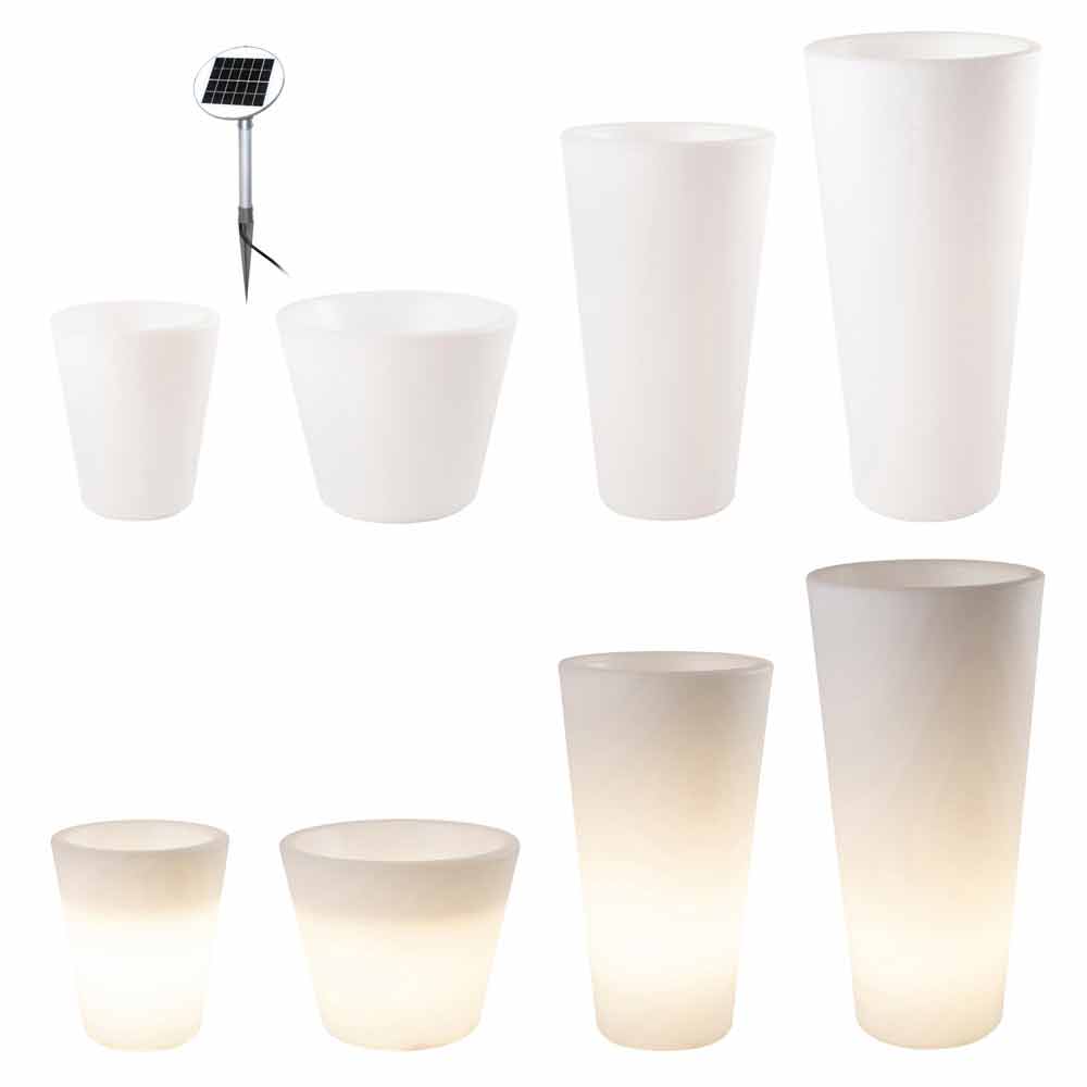 Vaso luminoso de design moderno e branco para interior ou exterior com led ou solar em vários tamanhos.