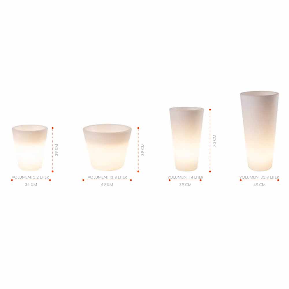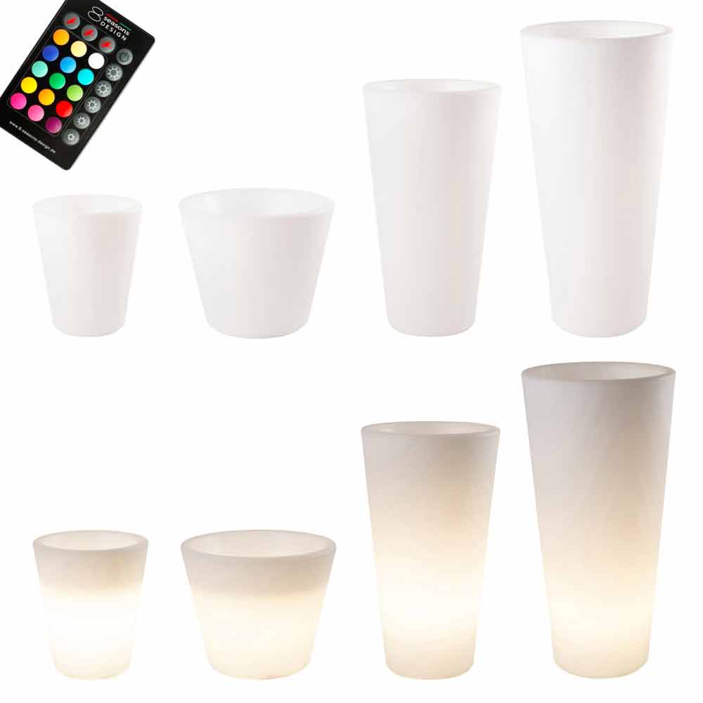 vaso luminoso disponível em diferentes tamanhos e cores ajuda a criar um