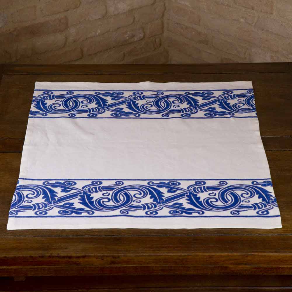 Pano de prato impresso à mão de alto artesanato com design antigo, disponível em três variantes, criação exclusiva de arte italiana.
