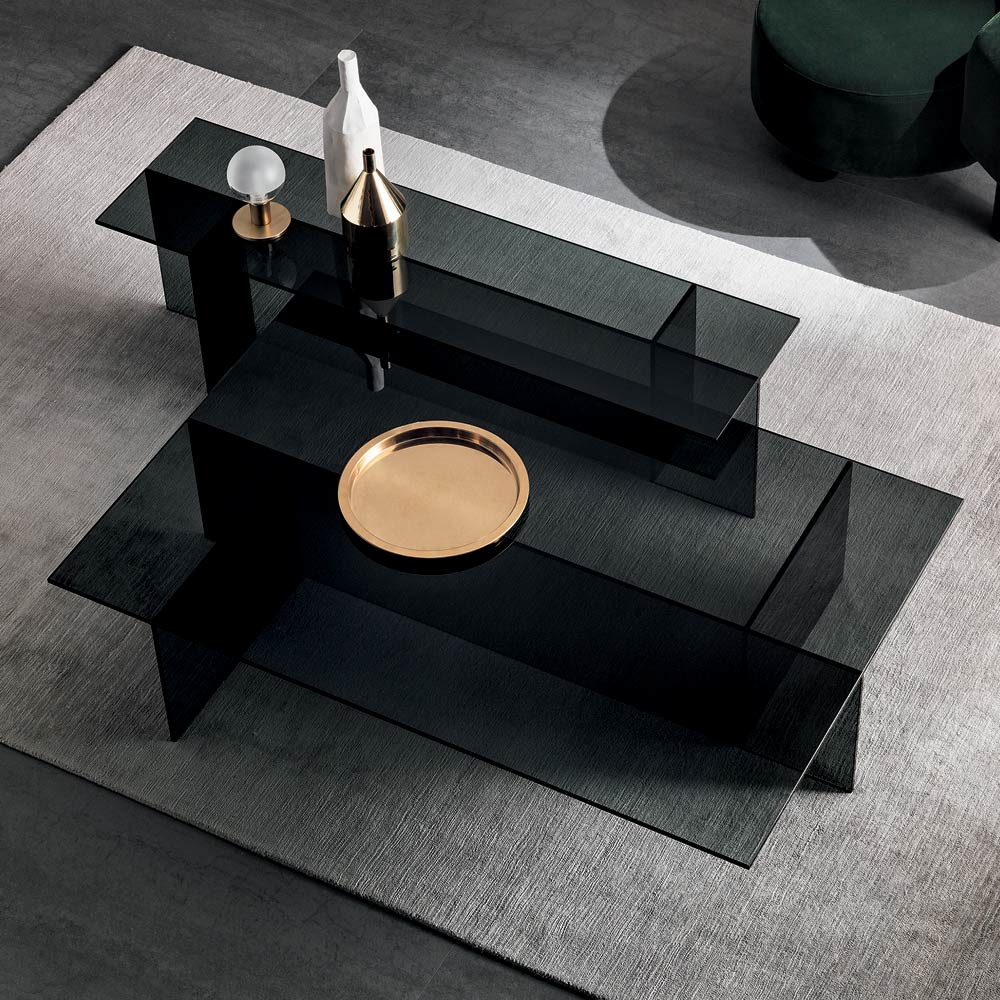 Sestola é uma mesa de centro caracterizada por um design rigoroso e essencial que vê a união de duas mesas numa única mesa formando uma verdadeira escultura.