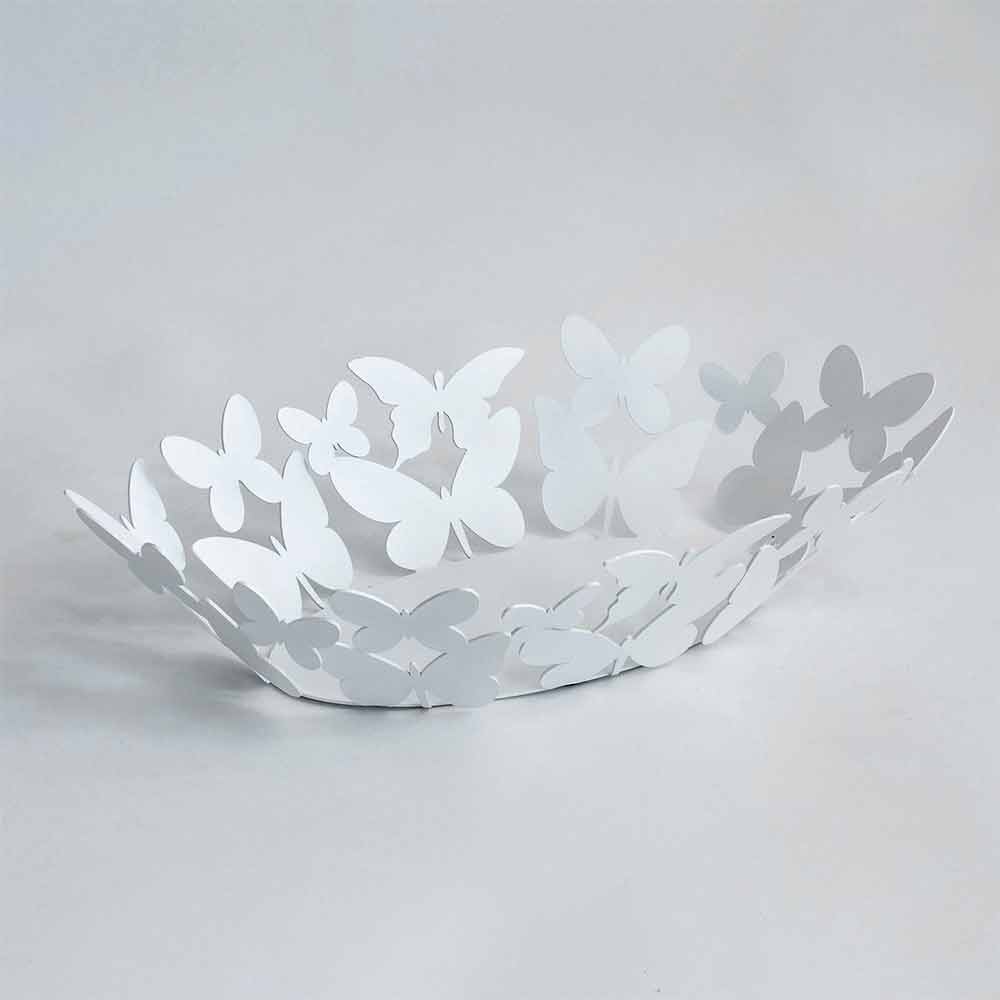 Peça central moderna e oval, feita à mão na Itália em ferro branco ou bege.
