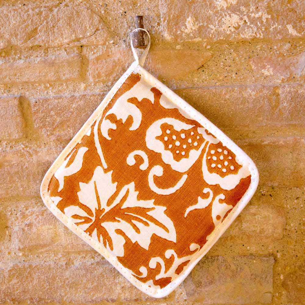 Pegadores de panela em linho puro, de alto artesanato italiano, decorado com um design antigo impresso à mão, disponível em cinco variantes, uma obra de arte única feita na Itália.