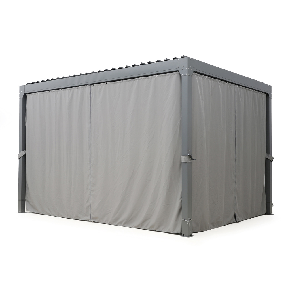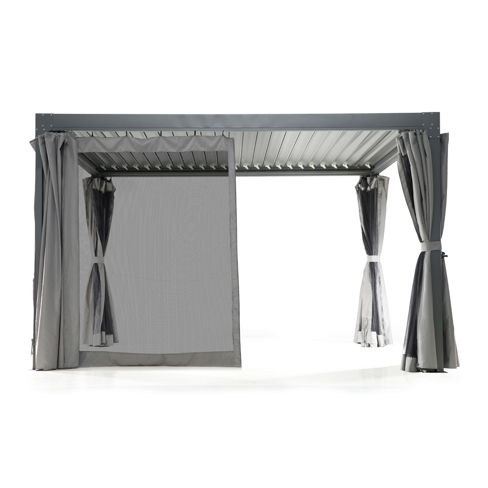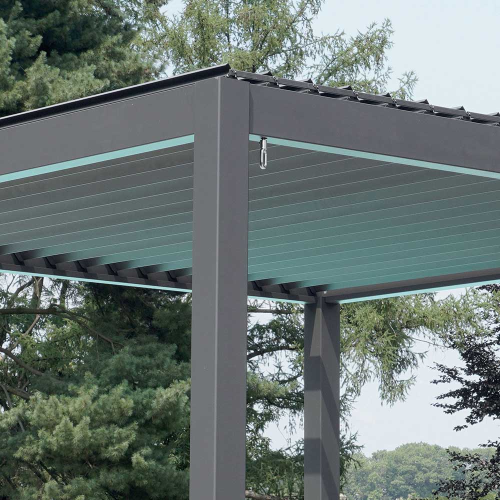 Esta pérgola de jardim representa o equilíbrio perfeito entre design moderno e funcionalidade avançada . Sua estrutura em alumínio pintado , sólida e resistente aos elementos, confere um toque de elegância minimalista que se integra perfeitamente em ambientes externos de prestígio, como jardins privativos , terraços ou beiradas de piscinas .