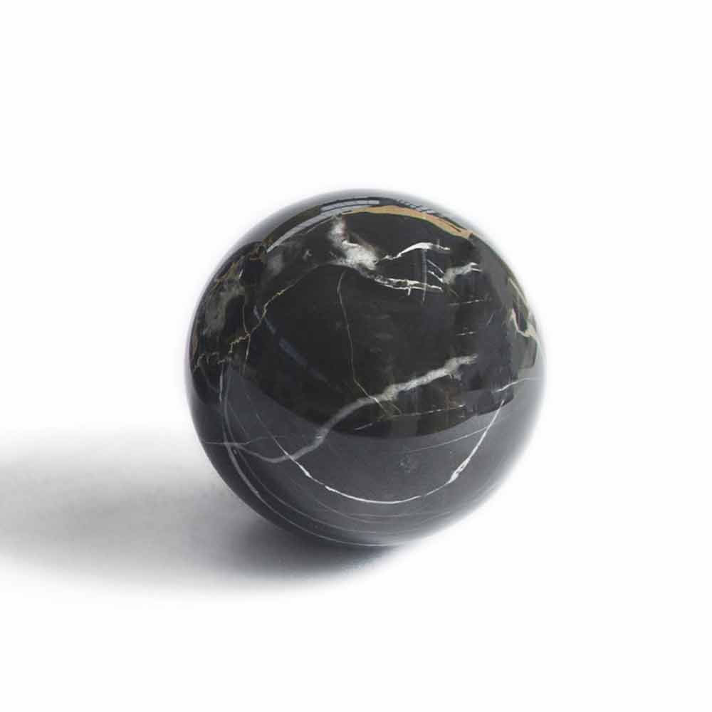 Peso de papel inovador e requintado caracterizado pelo design esférico particular e pelo mármore Portoro brilhante que o compõe. É uma peça única, pois cada bloco de mármore utilizado difere dos demais nos veios e tonalidades. Cada produto é feito à mão por profissionais especializados há gerações no processamento de mármores.