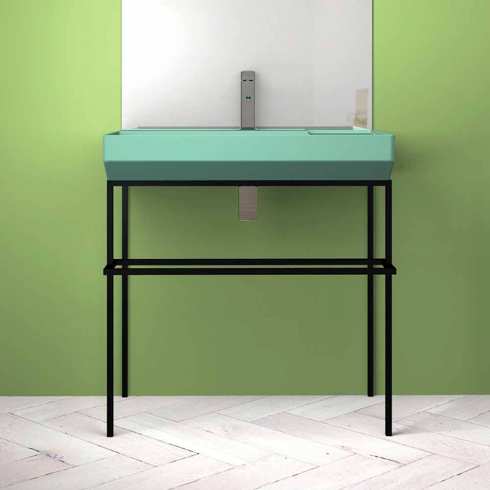 Viviano é uma bancada prodigiosa ou pia de parede feito à mão na Itália em cerâmica, caracterizada por formas de cantos vivos e com personalidade forte, perfeitas para mobiliar seu banheiro com estilo e design.