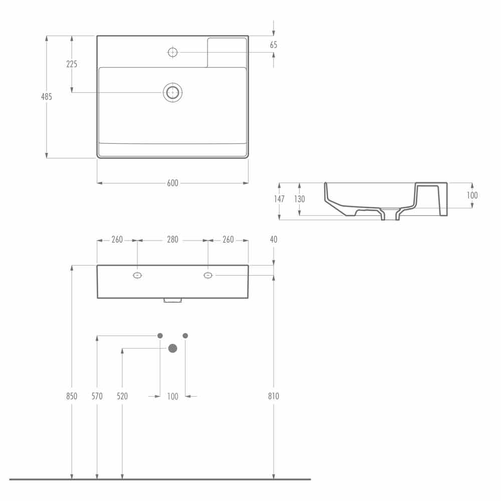 É esperado um orifício de torneira, mas no momento da encomenda pode ser realizado com três orifícios ou sem orifício no caso de ser decidido utilizar uma torneira de parede. Tap não está incluído.