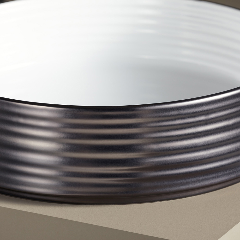 toda a qualidade do Made in Italy. Acabamentos disponíveis:- Esmalte branco brilhante interior e exterior, borda de cobre polido
