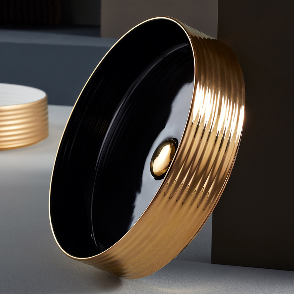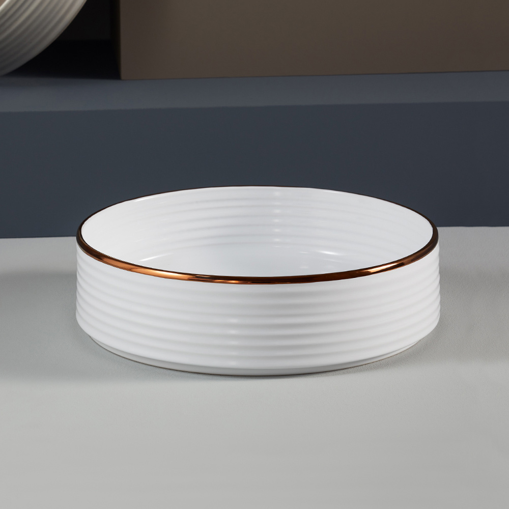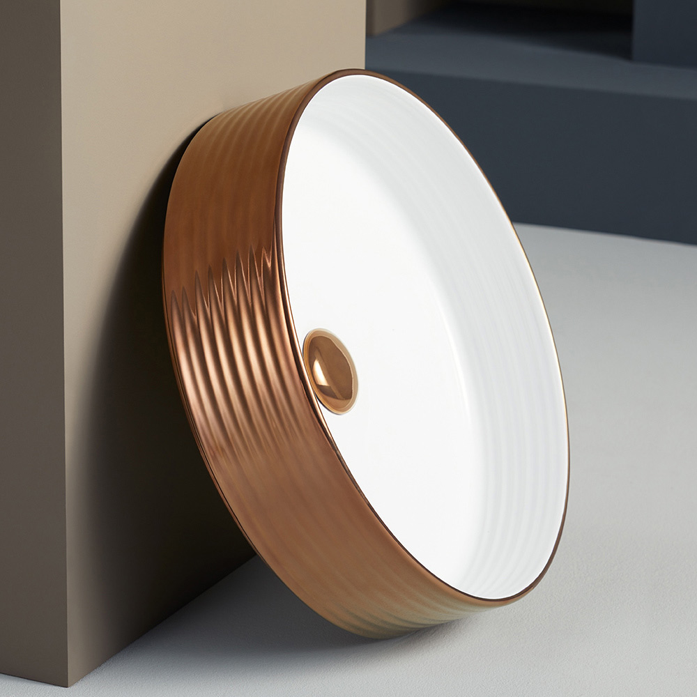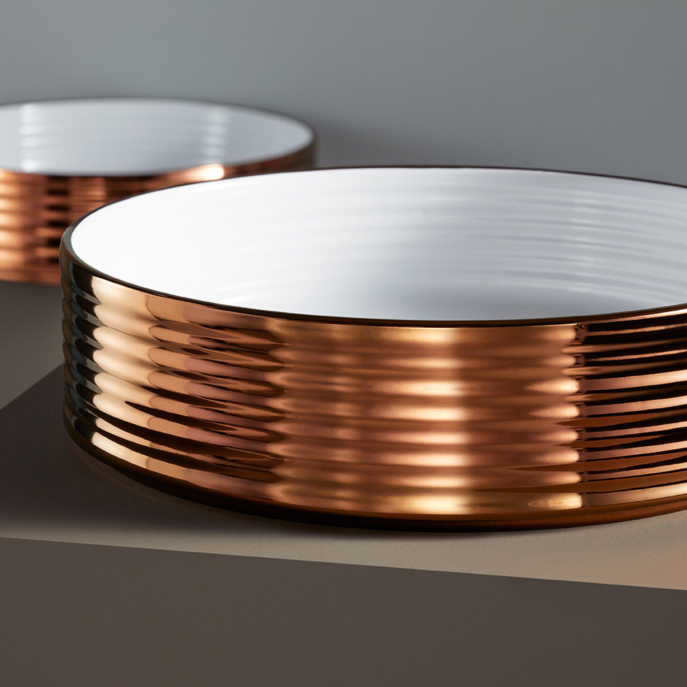 - Interior branco brilhante, exterior em ouro rosa brilhante