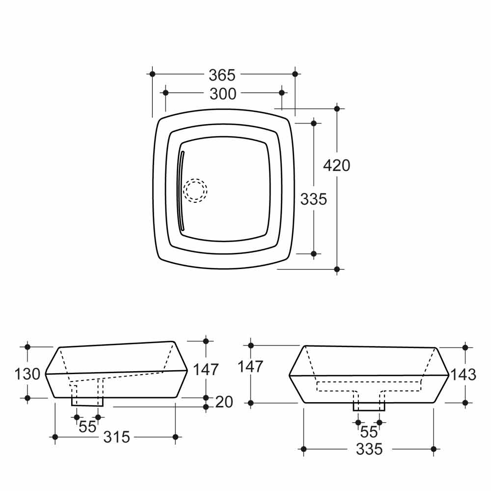 Lavatório de bancada de design Simon made in Italy em cerâmica branca