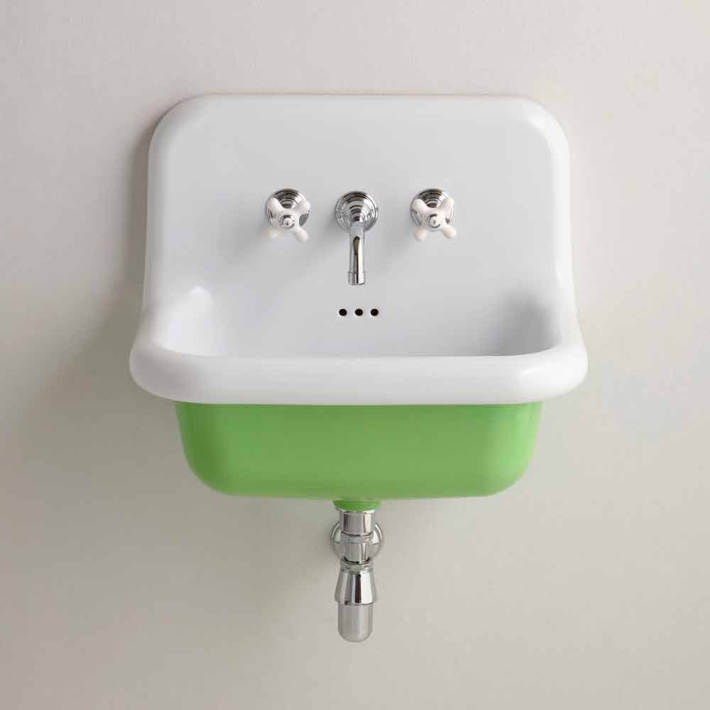 Lavatório de cerâmica retangular Jordan com parte inferior colorida