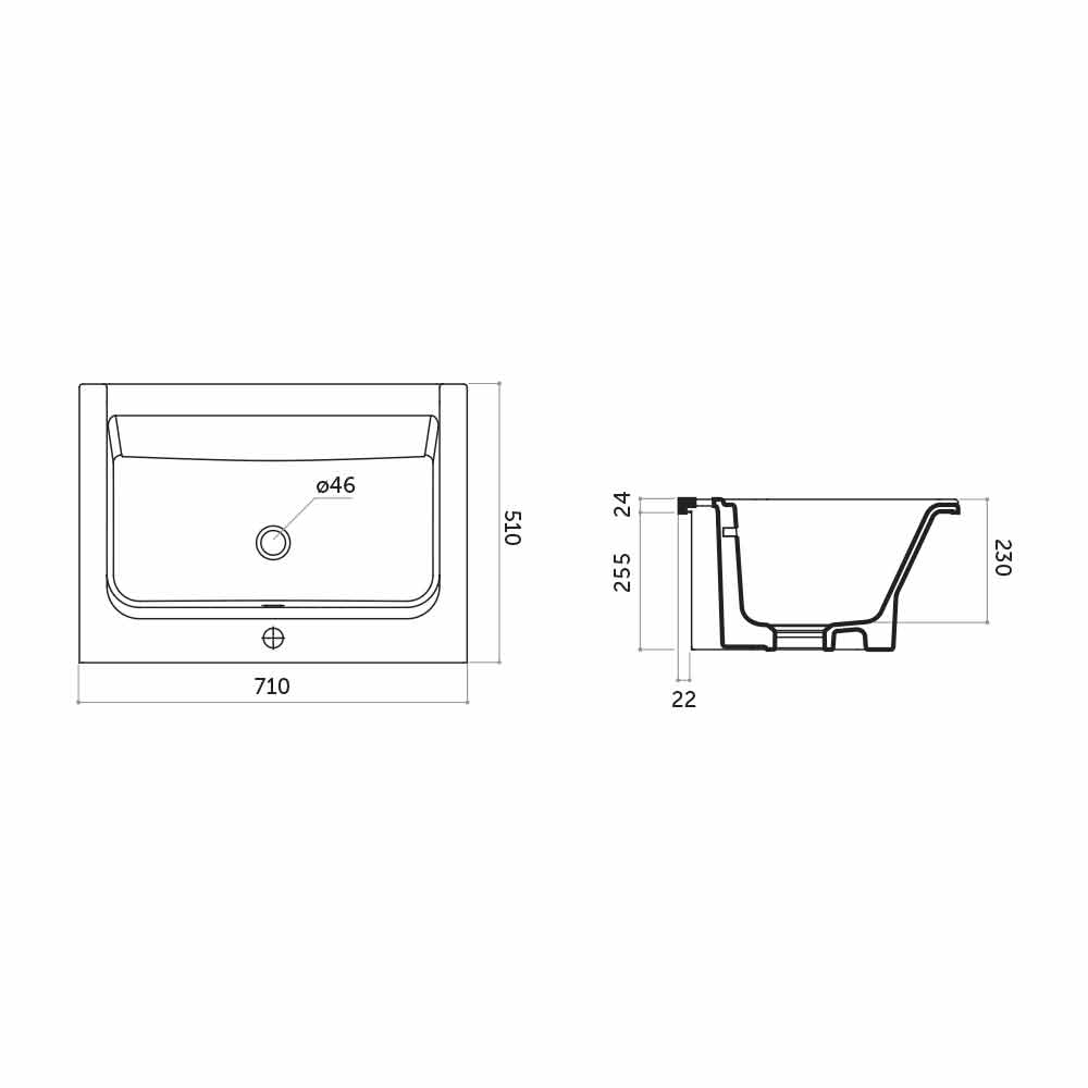 A pia vem com furo único central.