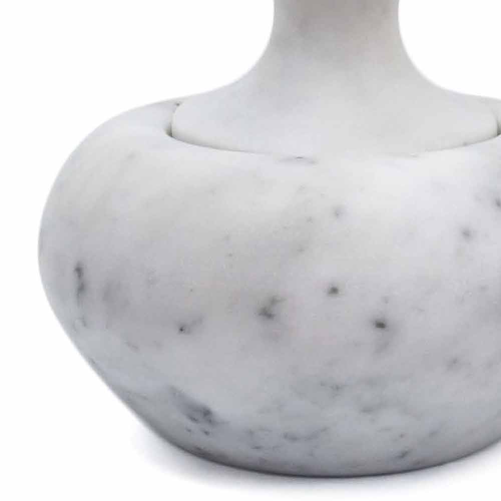 Pilão quebra-nozes funcional e elegante caracterizado pela forma inovadora e pelo mármore de Carrara branco que o compõe.