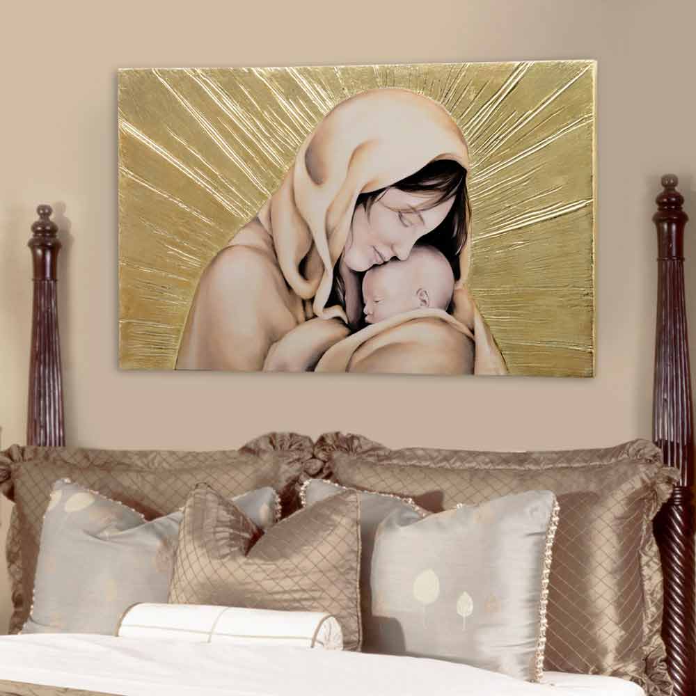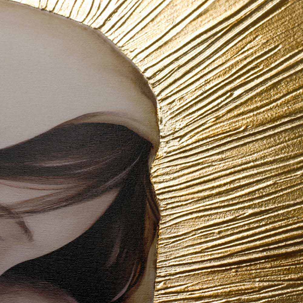 Amore Infinito é decorado à mão com folha de ouro em relevo sobre tela.