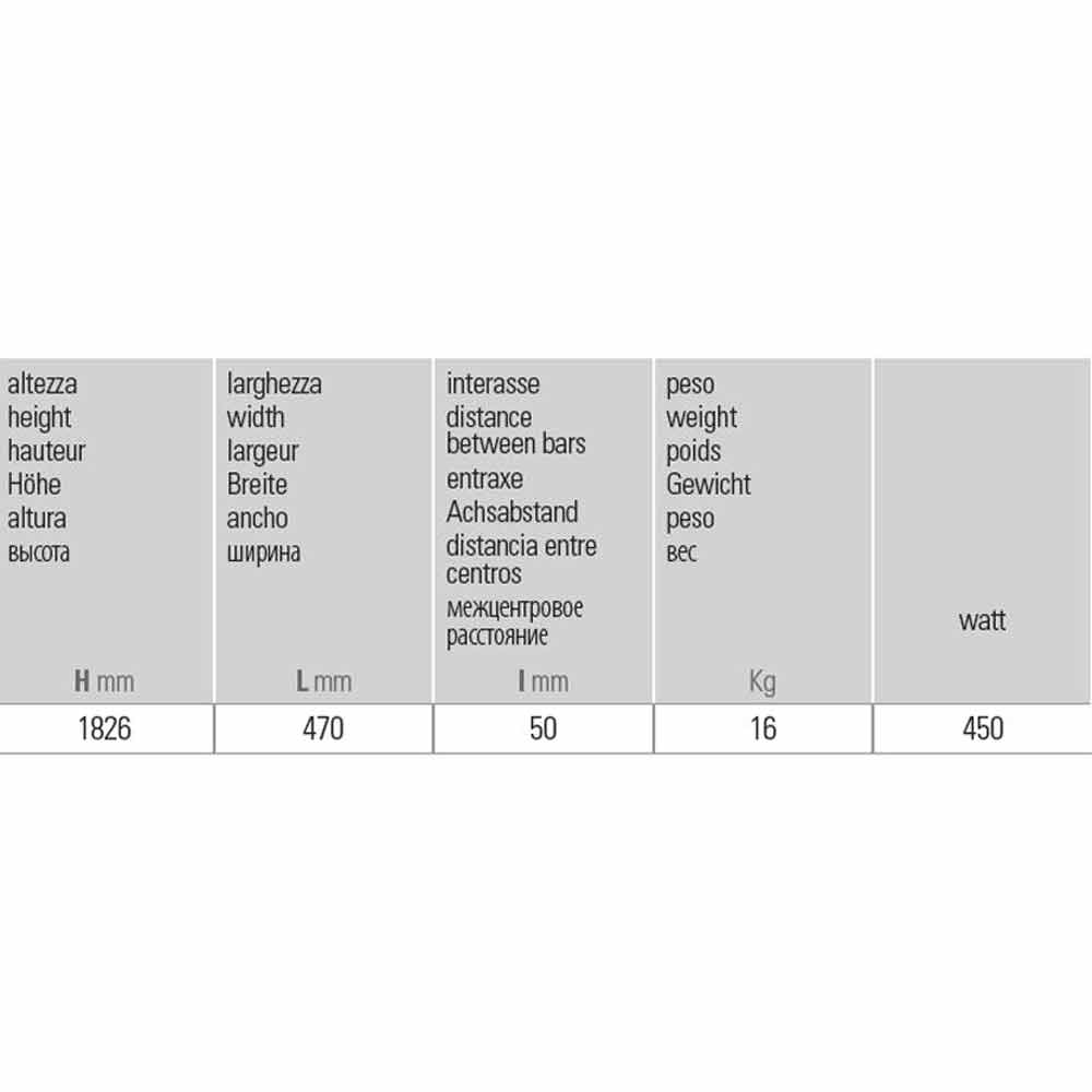É um radiador de alumínio com base de aço inoxidável adequado para ambientes contemporâneos, feito inteiramente na Itália , o valor do radiador é determinado por valores como qualidade total, serviço do mais alto nível, a busca de um design sempre inovador mas funcional e respeito para o meio ambiente não só no desenvolvimento de produtos de baixo impacto ambiental, mas também na fase de produção.