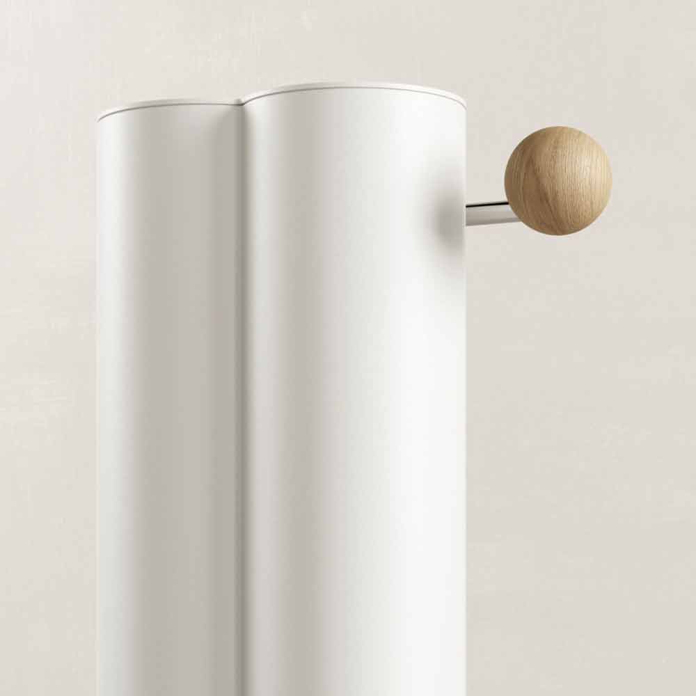 Disponível em diversos acabamentos além dos do menu pendente, o complemento inclui toalheiro a 90 cm do solo e puxador em faia natural incluído no preço e fornecido de série já montado no radiador. A barra e o botão podem ser montados à direita ou à esquerda: escolha a orientação que preferir.