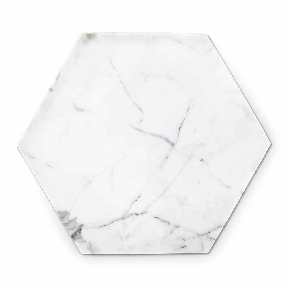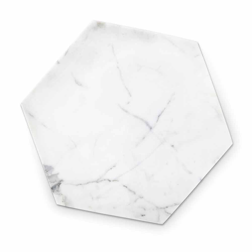 Placa de desenho hexagonal em mármore de Carrara branco Made in Italy.