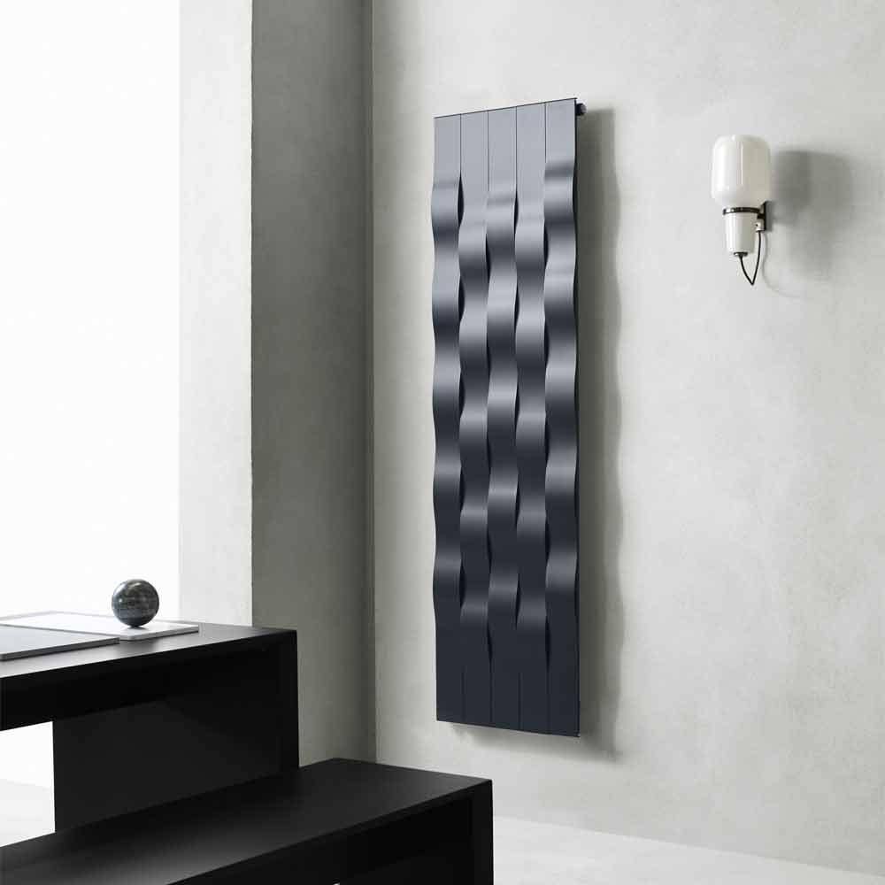 Radiador de design elétrico vertical em aço para salas de estar ou banheiros modernos e fabricados na Itália.