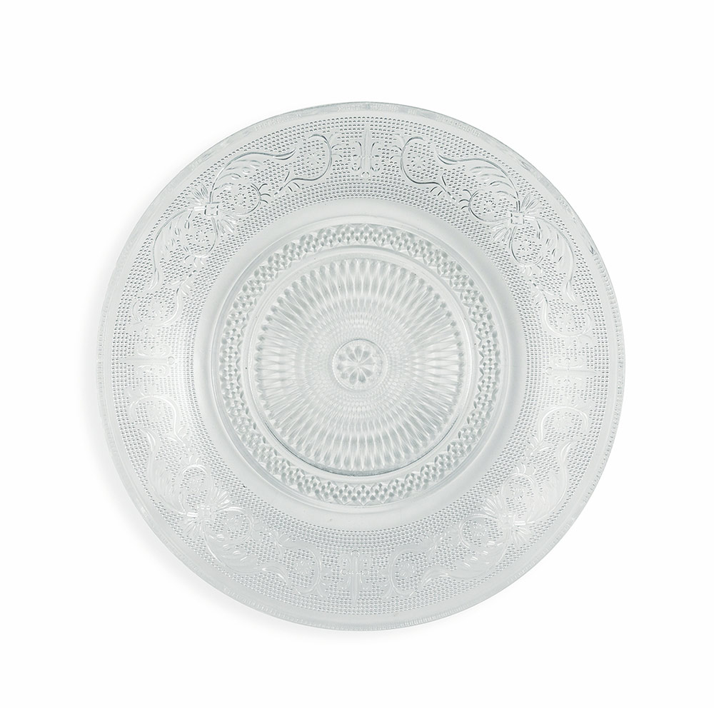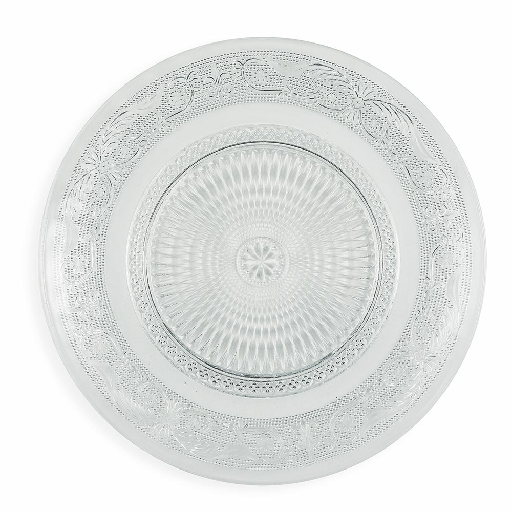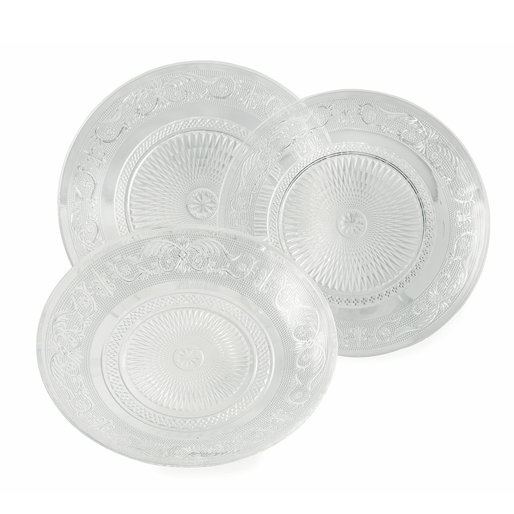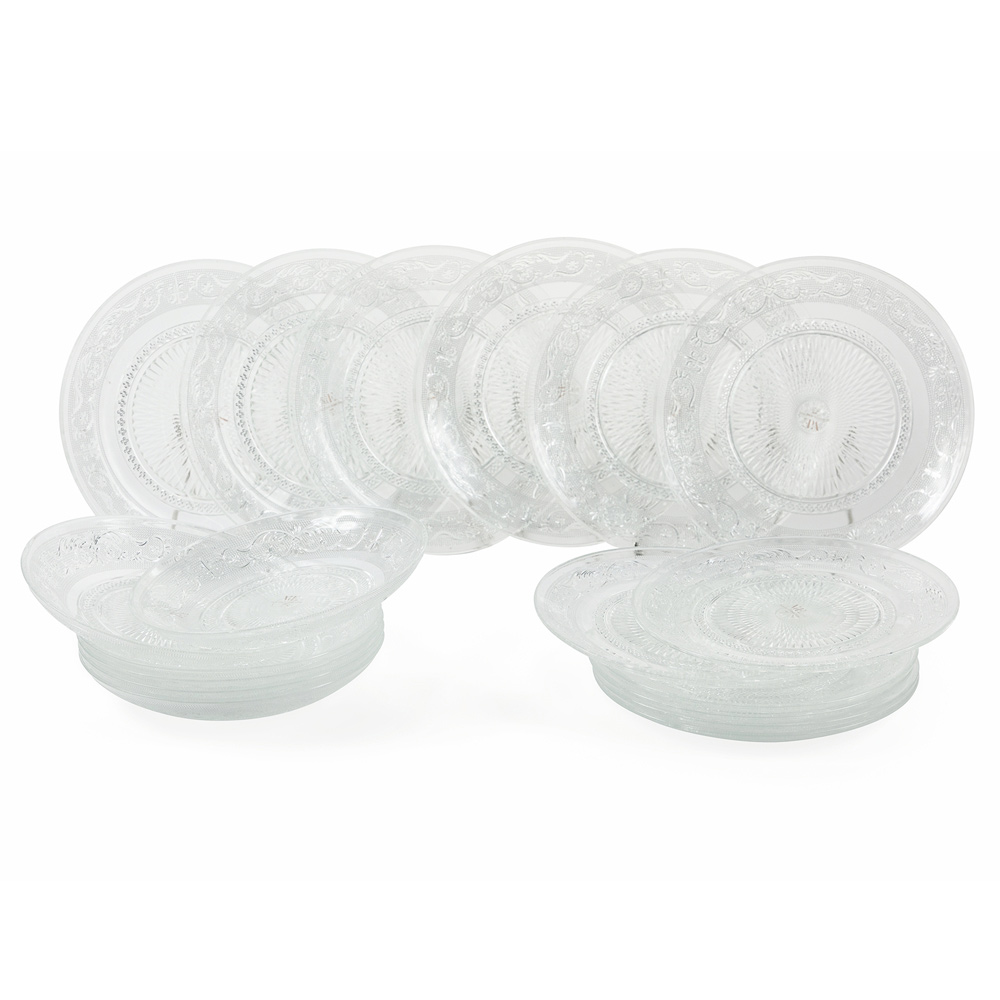 Conjunto de pratos de jantar de vidro transparente decorado com 18 peças.