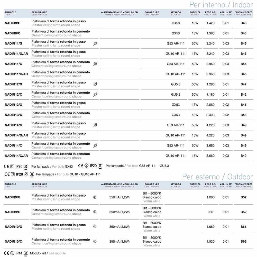 Plafon de design moderno Nadir 12 by Aldo Bernardi , disponível nas versões concreto ou gesso.