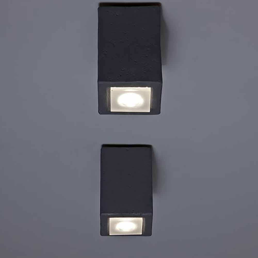 Esta luminária de parede é realizada em argila para uso externo, material escolhido para seu resistace, enquanto o difusor está em PMMA.