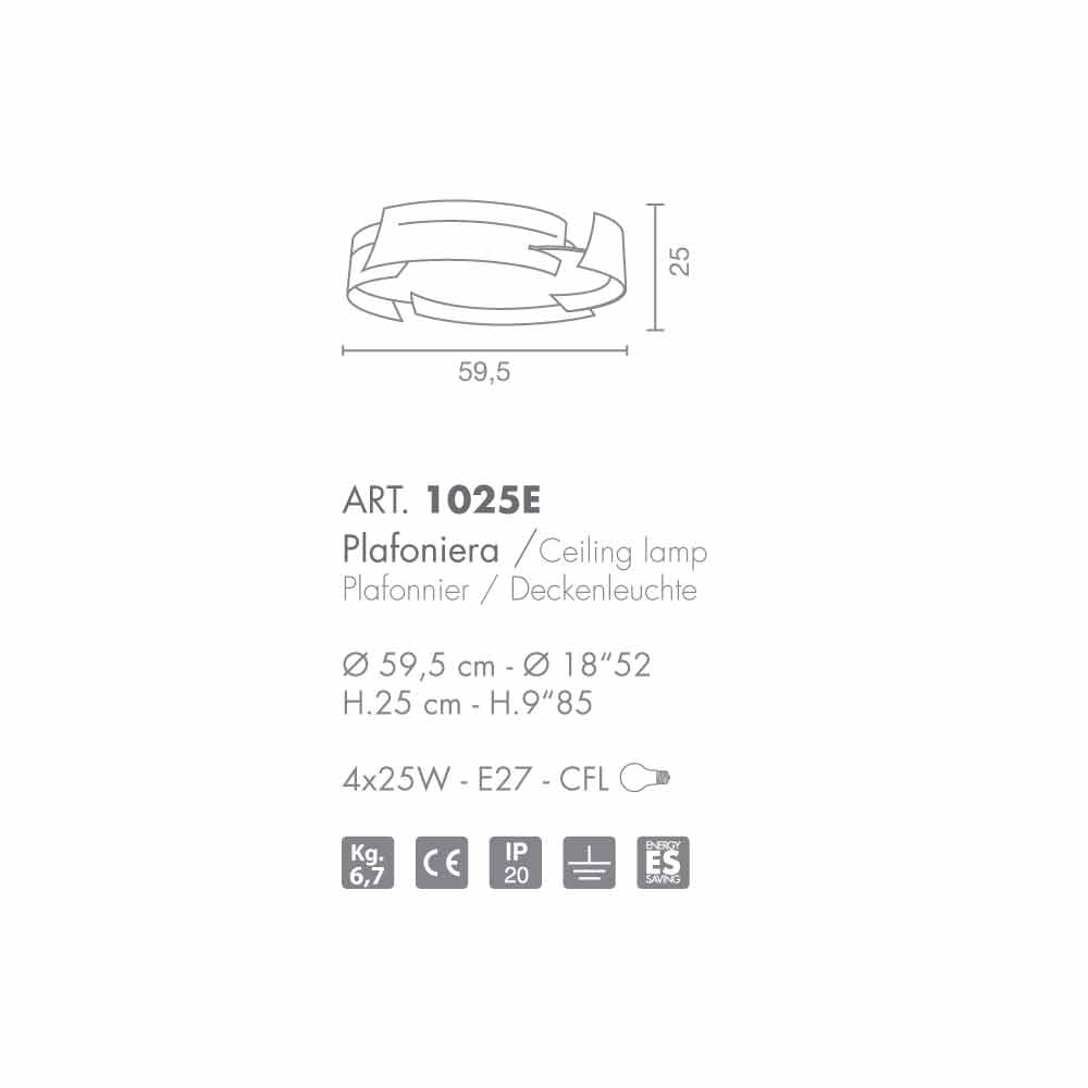 Plafon Selene Vultur, Ø59,5 H 25cm feito na Itália, design moderno.