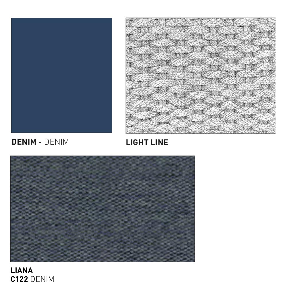 - perna de denim, tecido de linha leve e almofada de assento de denim liana.
