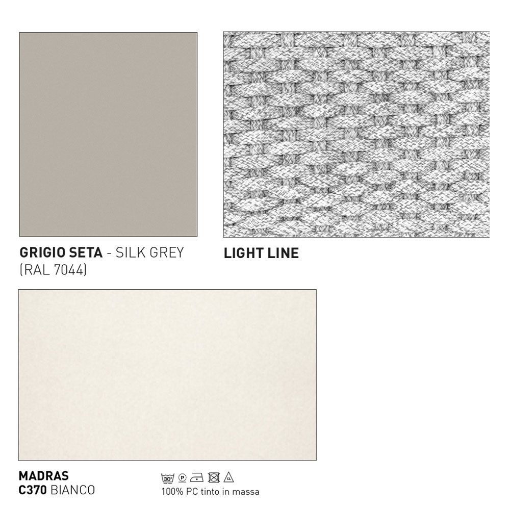 - perna cinza seda, trama leve e almofada de assento madras branca;