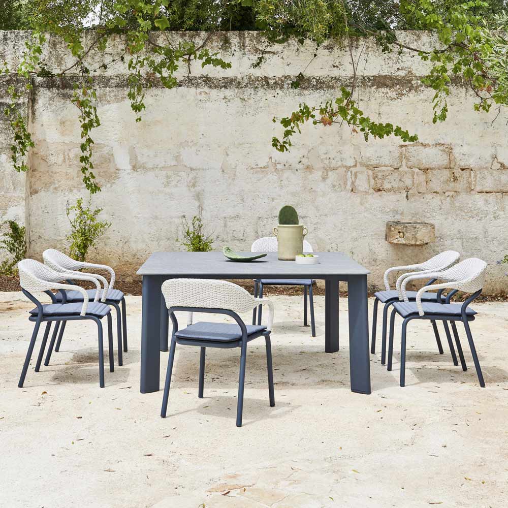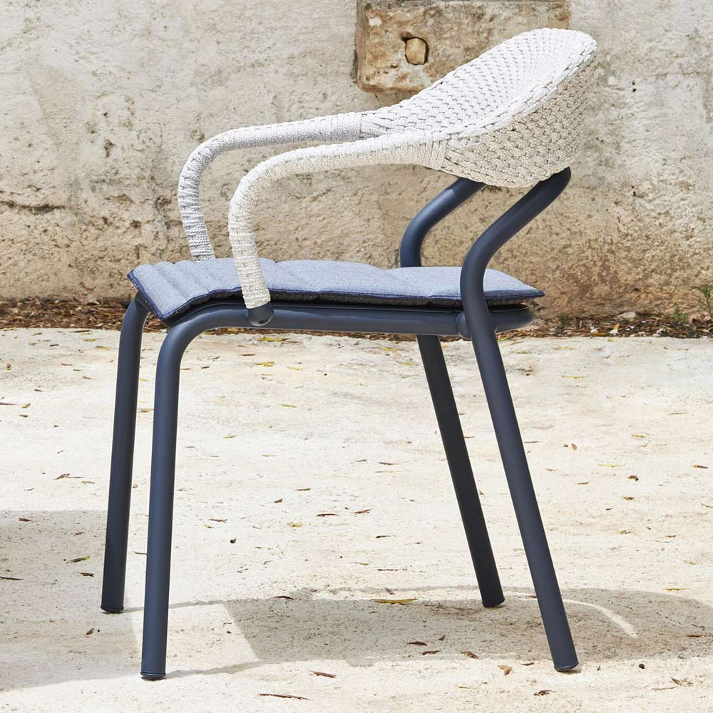 Poltrona de jardim empilhável em alumínio pintado com almofada de assento Made in Italy.