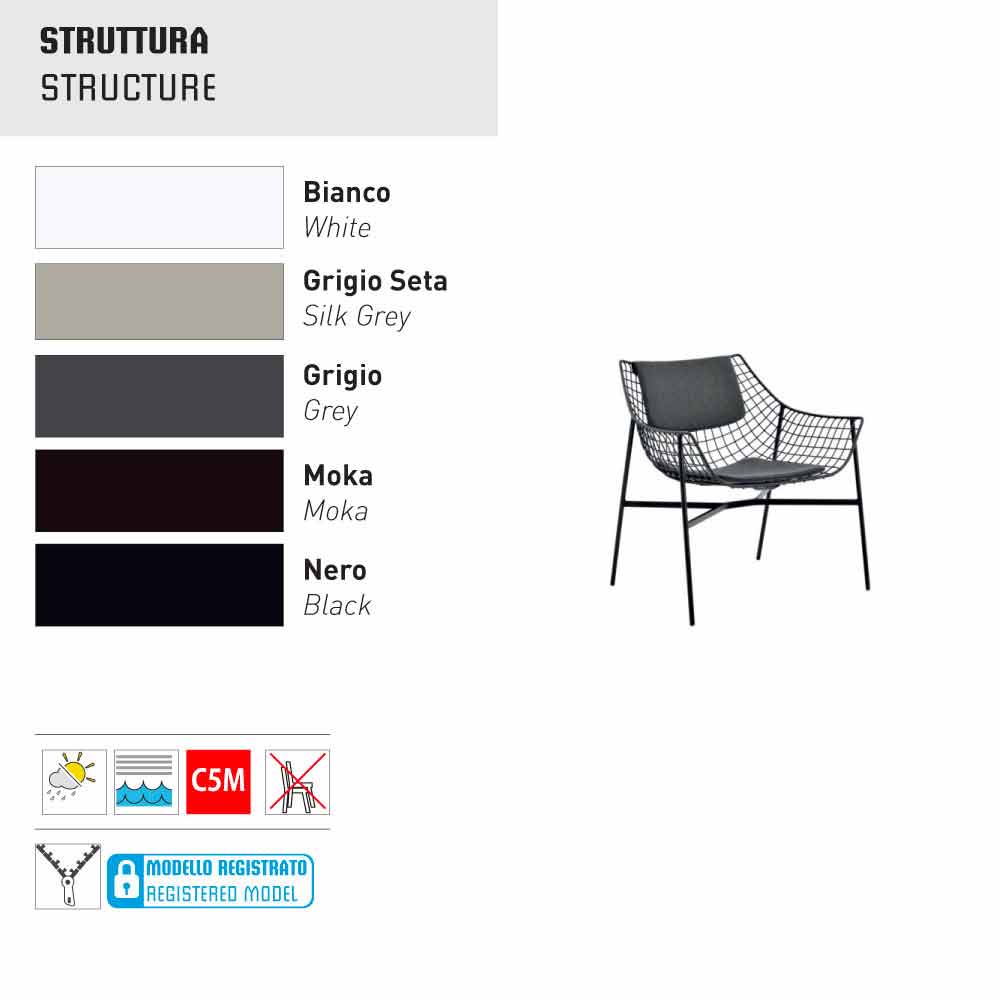 A poltrona de jardim Summes Set tem uma fama de aço com revestimento em pó e é um modelo registrado. Graças ao seu design versátil, você pode usá-lo tanto no exterior como no interior. Vem com almofadas de assento e encosto.