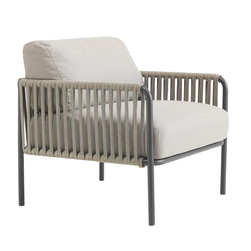 Poltrona para área externa em aço e corda com almofadas Fabricado na Itália.