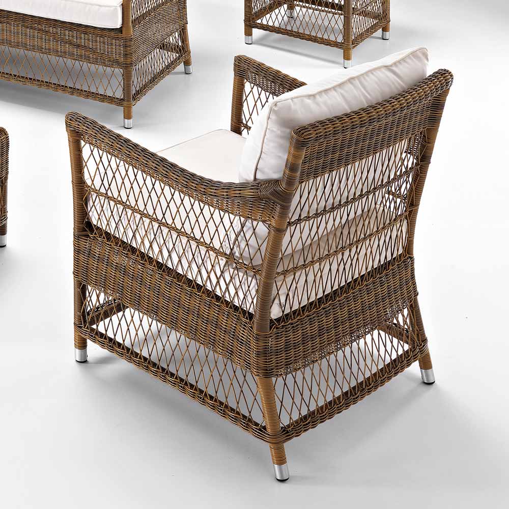 O estilo de tecelagem é refinado e delicado e, juntamente com a altíssima qualidade dos materiais e suas formas decisivas, tornam esta poltrona perfeita para mobiliar interiores e exteriores, ambientes privados e contratados, como terraços, varandas, jardins, mas também encontram uma localização perfeita à beira da piscina.