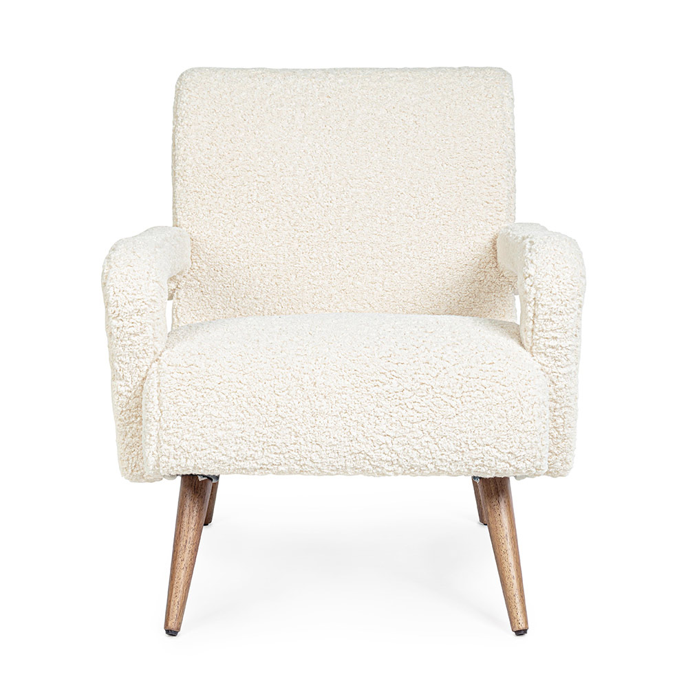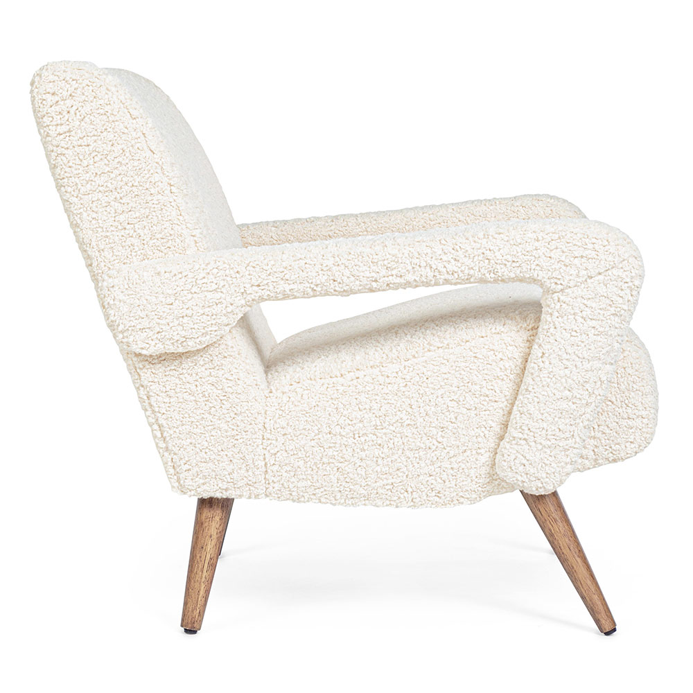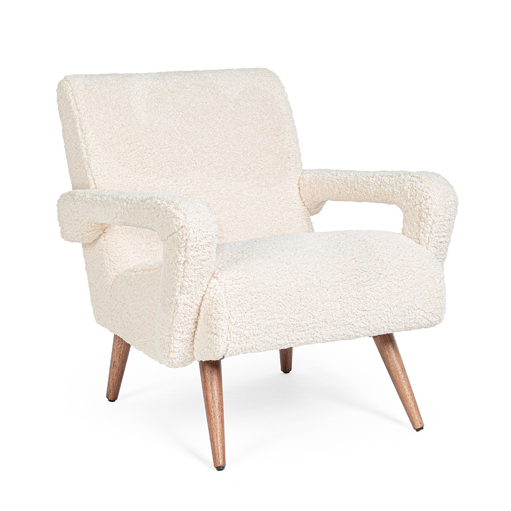Poltrona com apoio de braços em Rubberwood e assento com efeito de lã - Patrizia