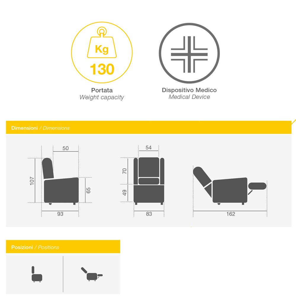 Poltrona com movimento que atinge a posição relaxada do encosto e estribo.