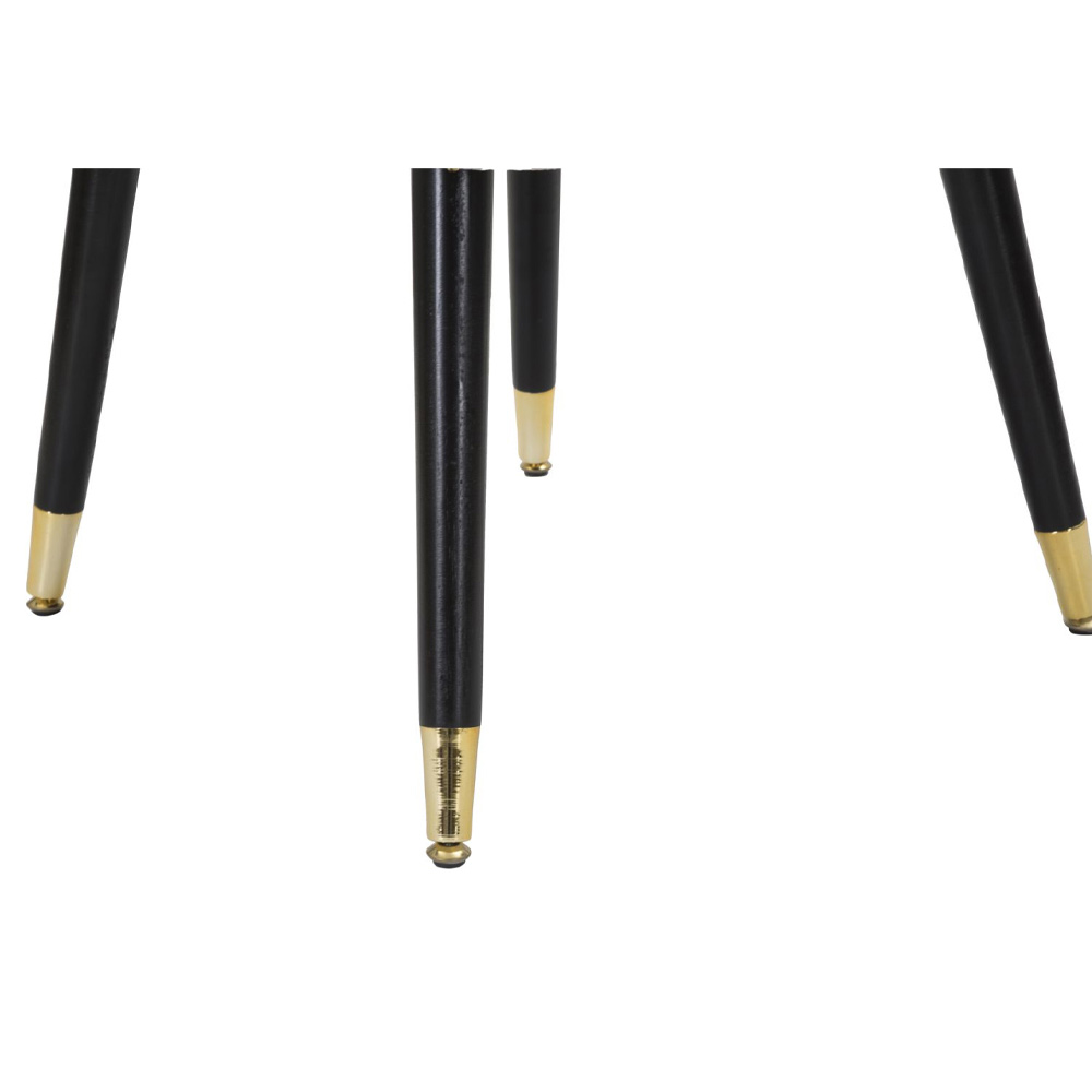 estrutura de madeira preta enriquecida com detalhes dourados e assento estofado em esponja e forrado em
