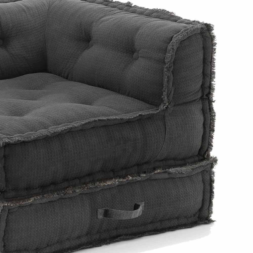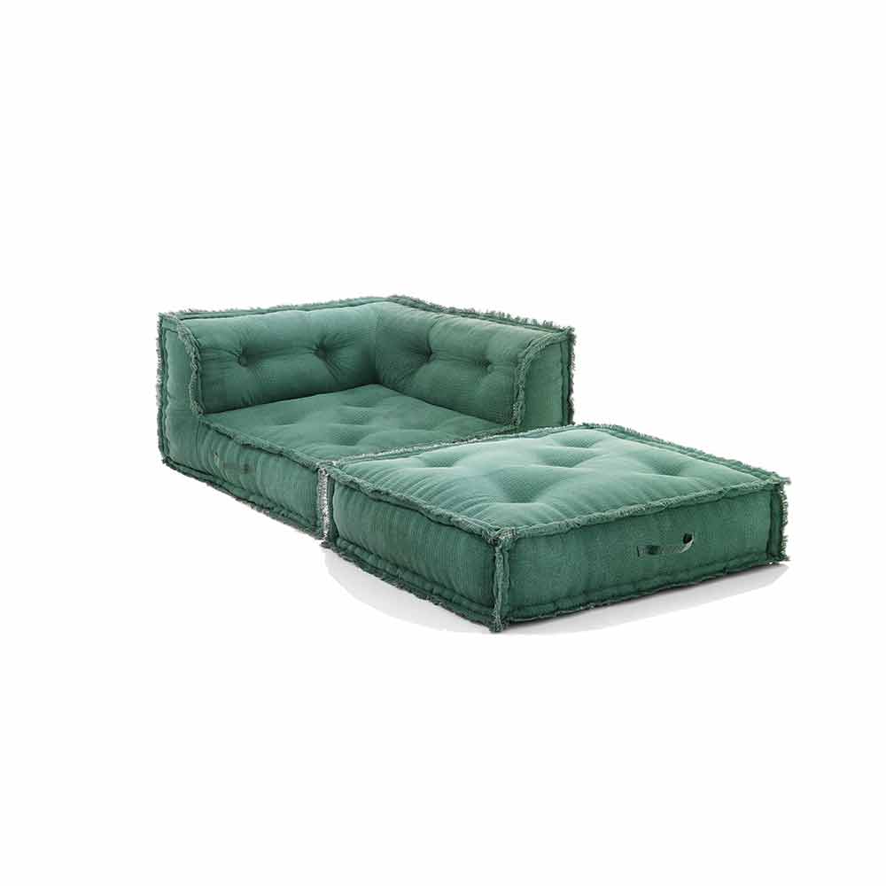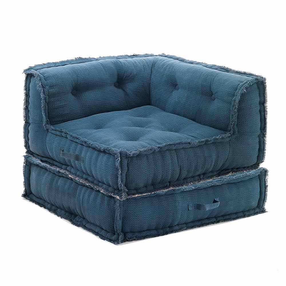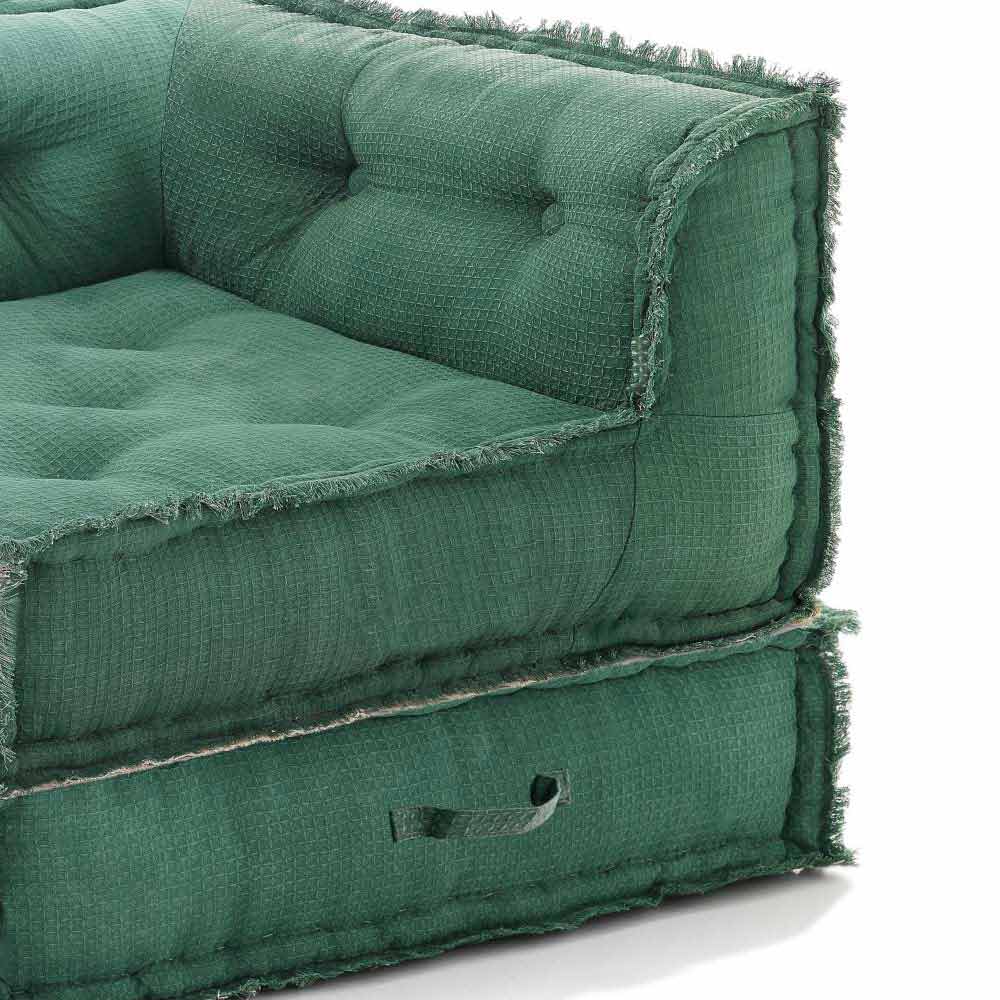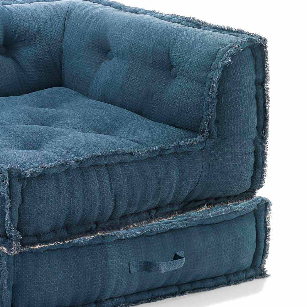 Poltrona de espreguiçadeira de canto de design étnico, produzida em algodão cinza, verde ou azul.