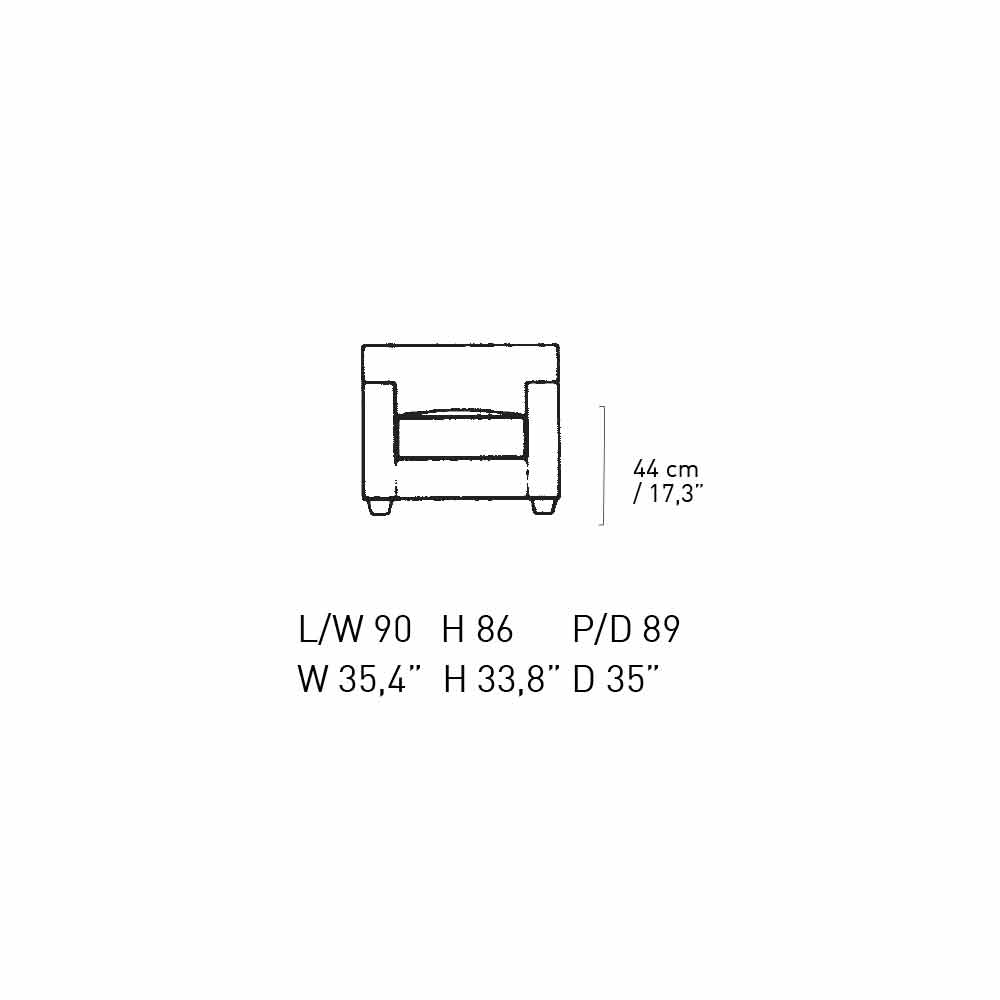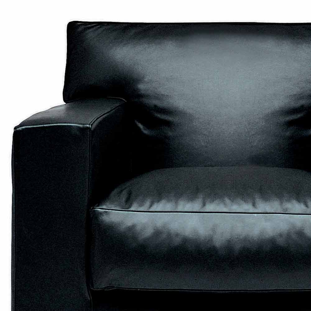 Poltrona com estrutura interna de madeira acolchoada com espuma de poliuretano e forro de fibra de poliéster, almofada de assento em penas de ganso esterilizadas,