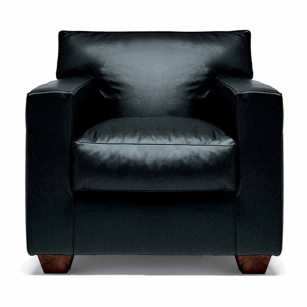 Poltrona da sala estofada em couro com pés de madeira Made in Italy.