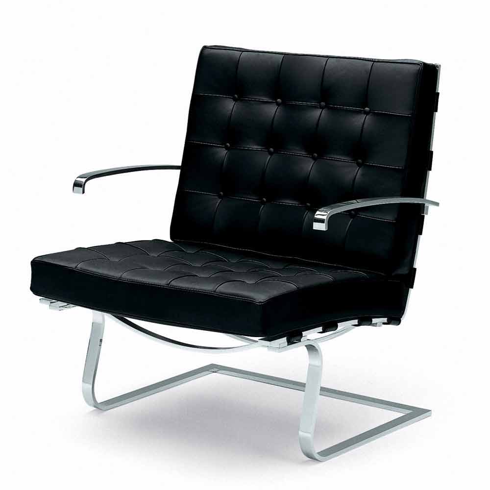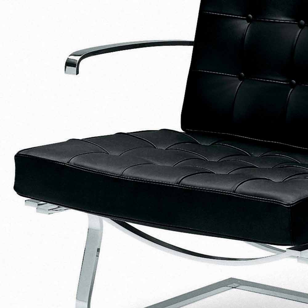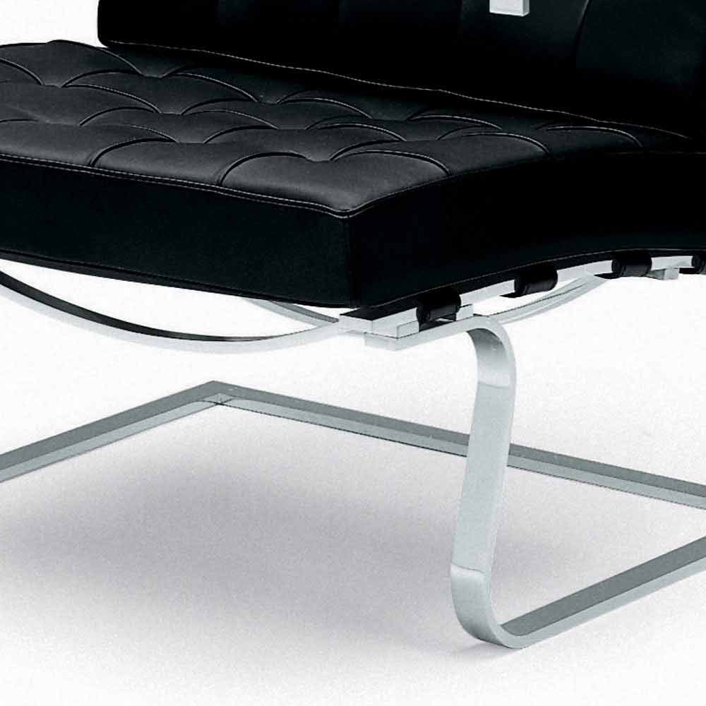 estrutura de aço cromado , almofadas em espuma de poliuretano e forro em fibra de poliéster, alças de apoio em couro e revestimento externo em couro, inteiramente