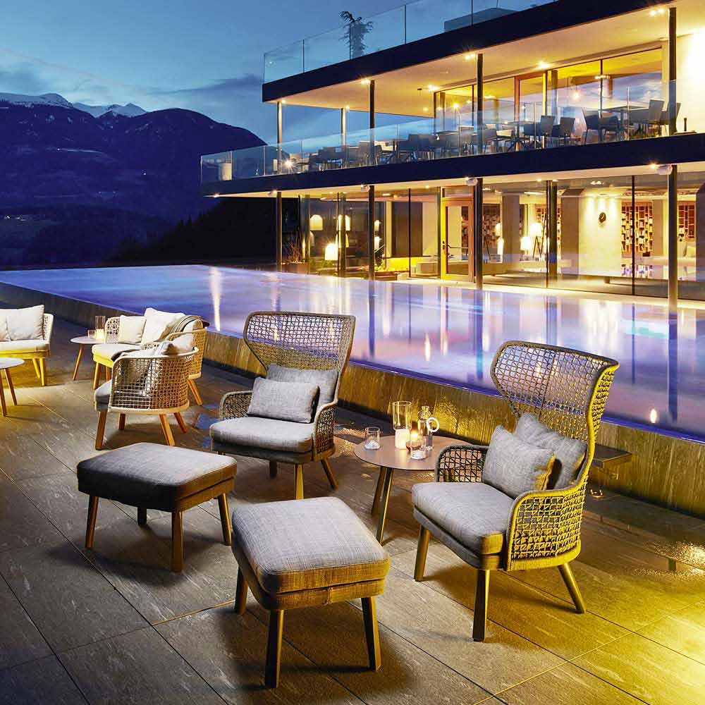 Graças à sua funcionalidade e ao máximo conforto, será perfeito para ambientes externos, como terraços, piscinas, jardins; mas encontra um posicionamento perfeito também dentro, na sala de estar.