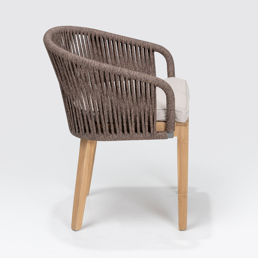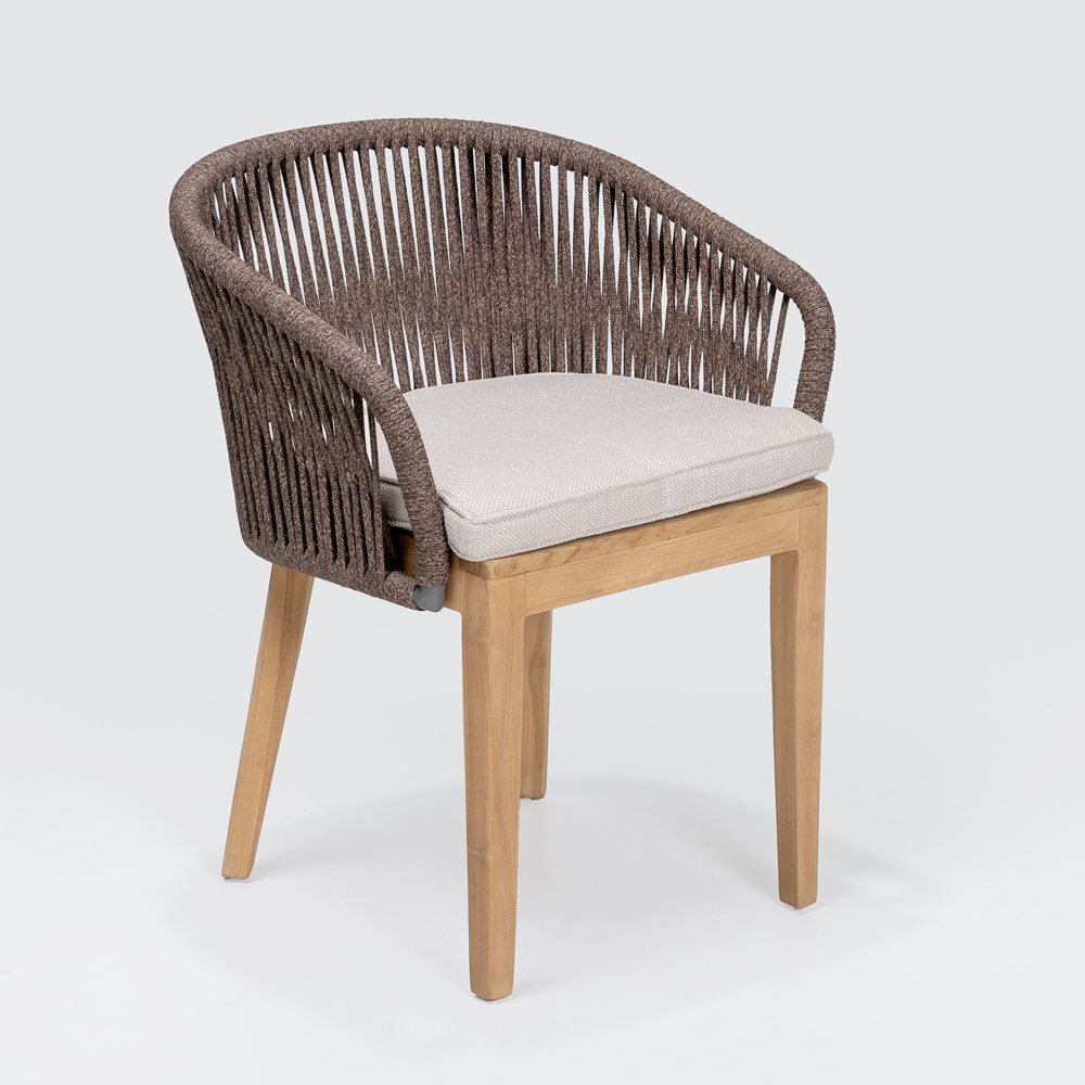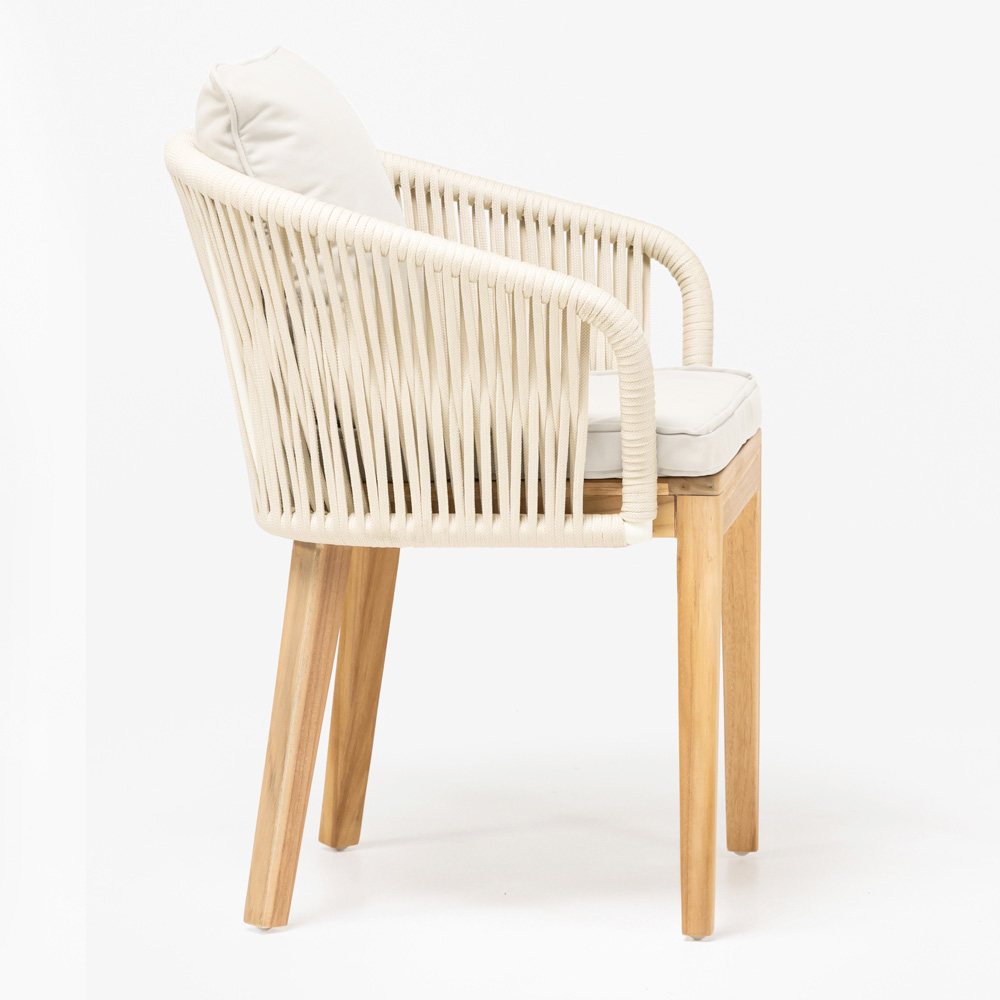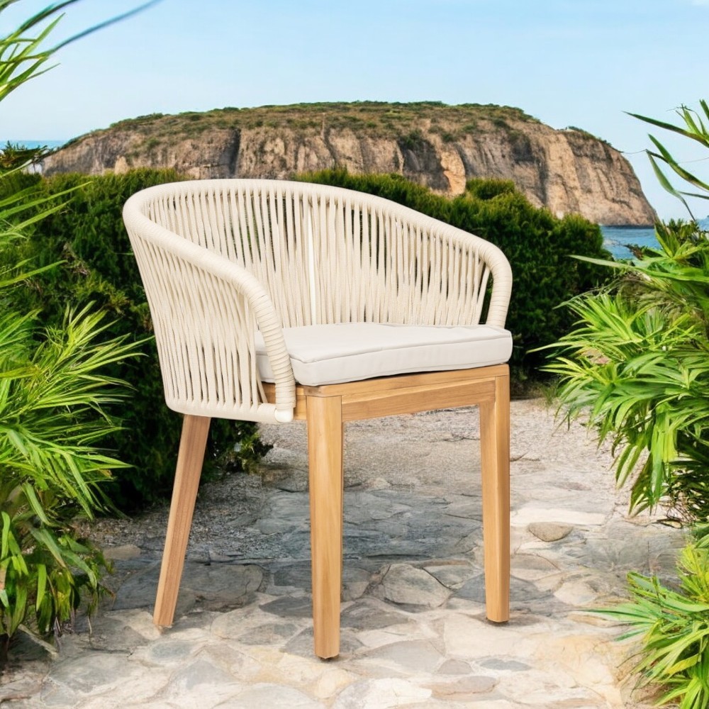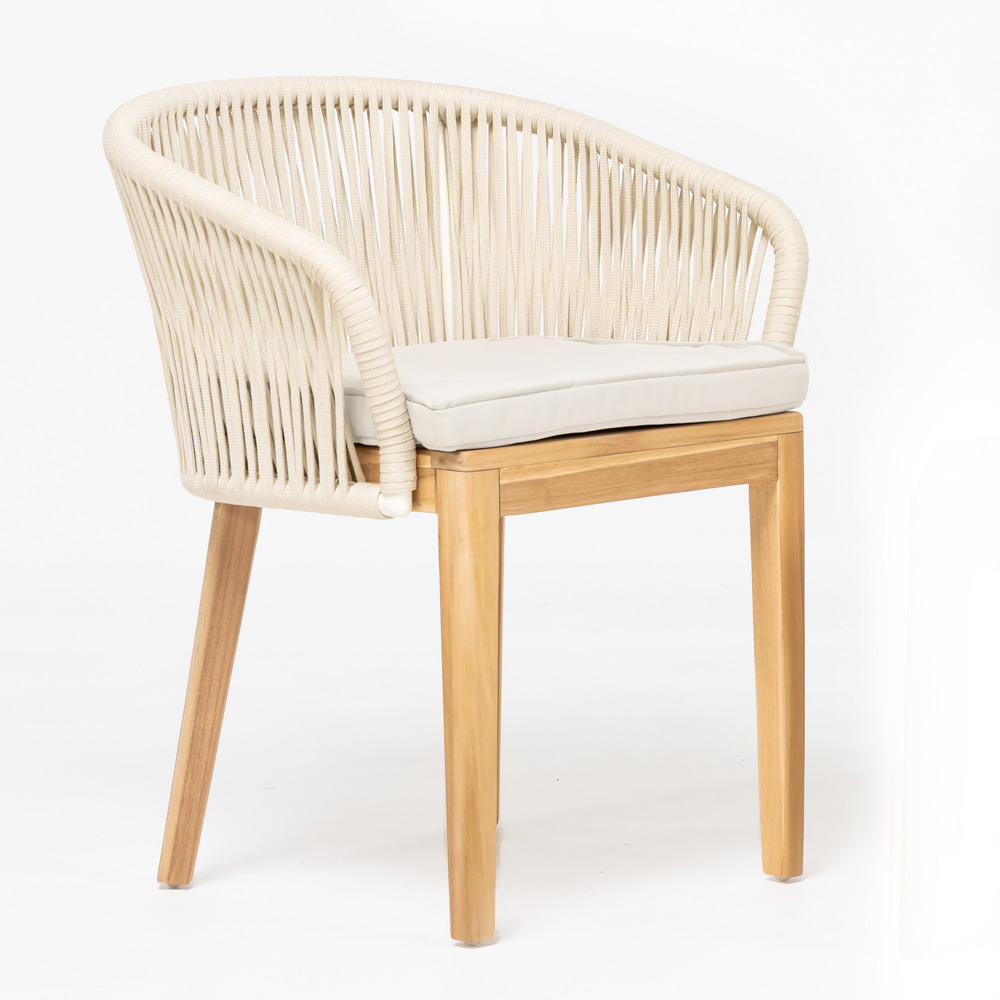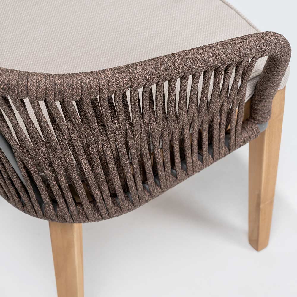 Cadeira de exterior em madeira de teca e tecelagem de polietileno.