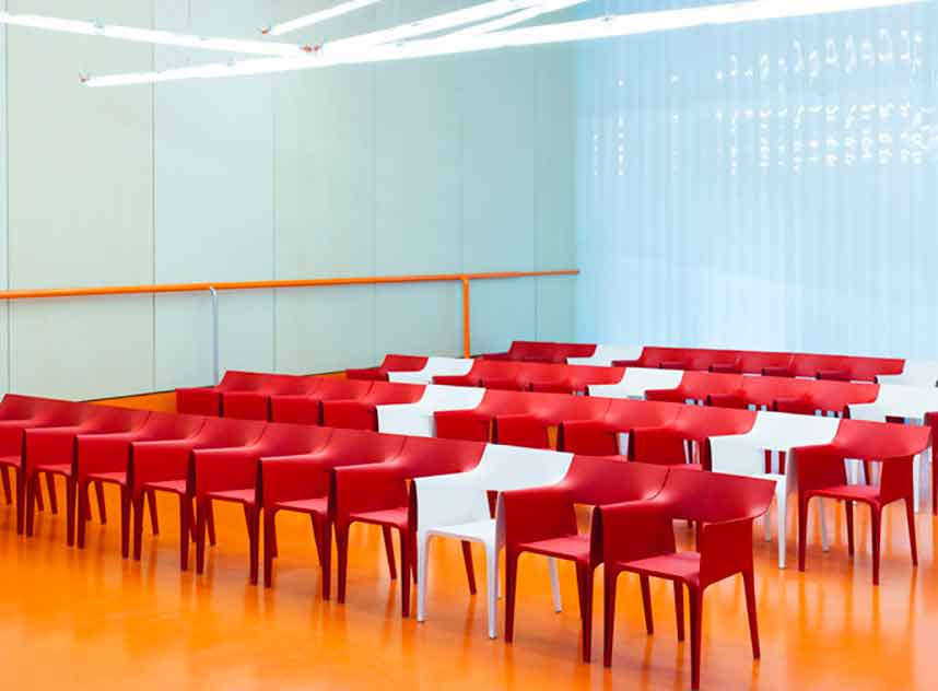 A linha quer brincar com as ondas e se tornar parte de um movimento em andamento: a de uma onda ondulante que imita o movimento do mar. A poltrona tem uma forma e design empilháveis para reduzir o espaço. Disponível nas seguintes cores: branco, preto, ecru, vermelho, pistache e mostarda.