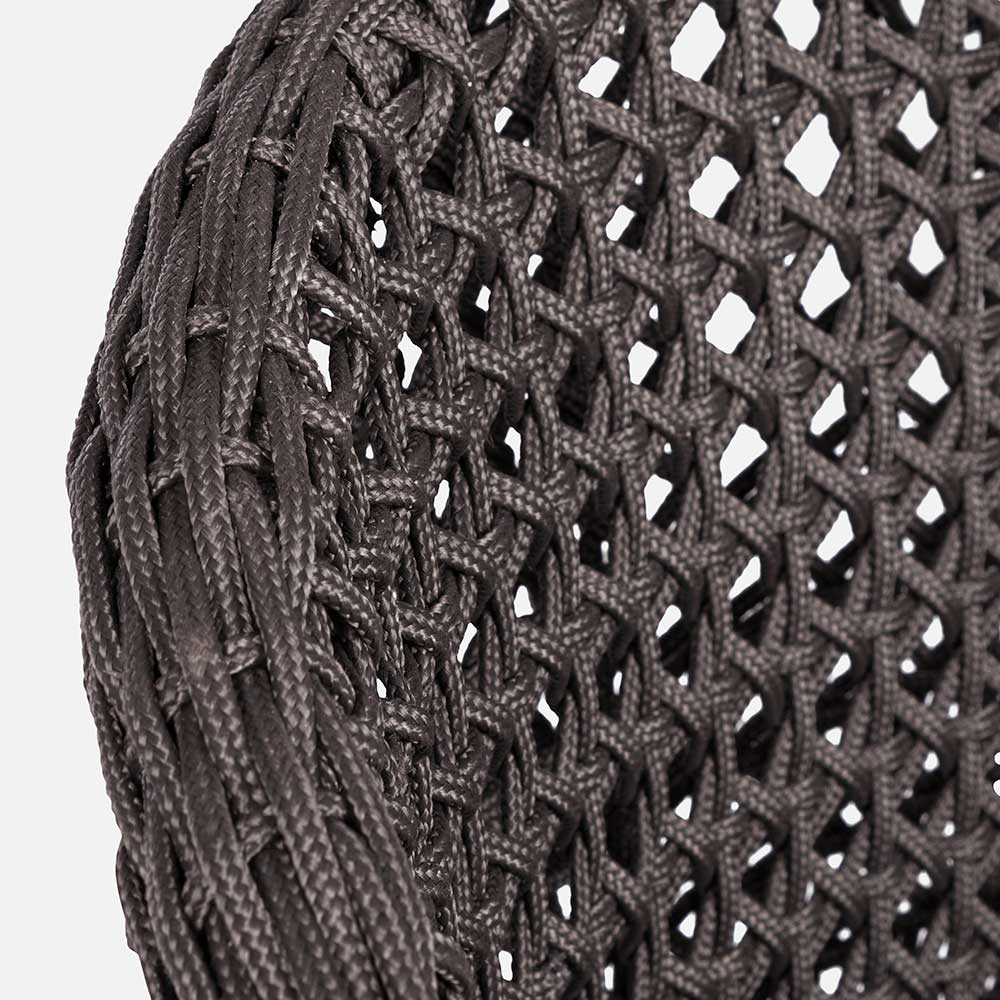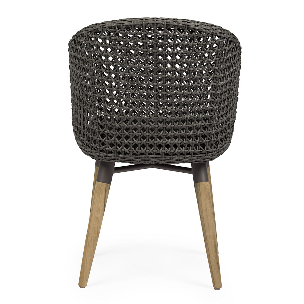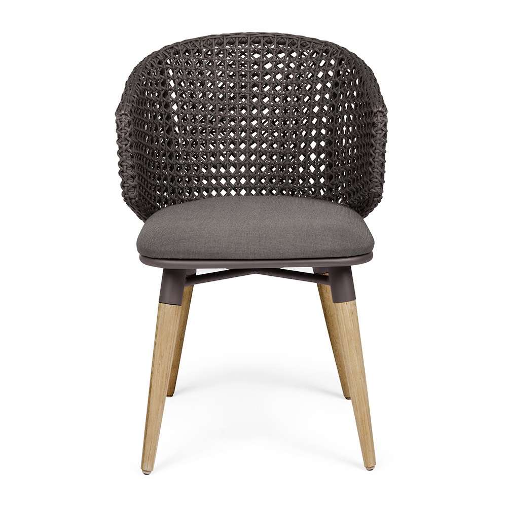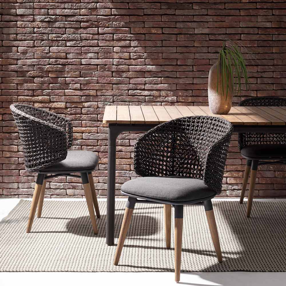 Poltrona exterior de alta qualidade em corda e tecido com pés em madeira teca.
