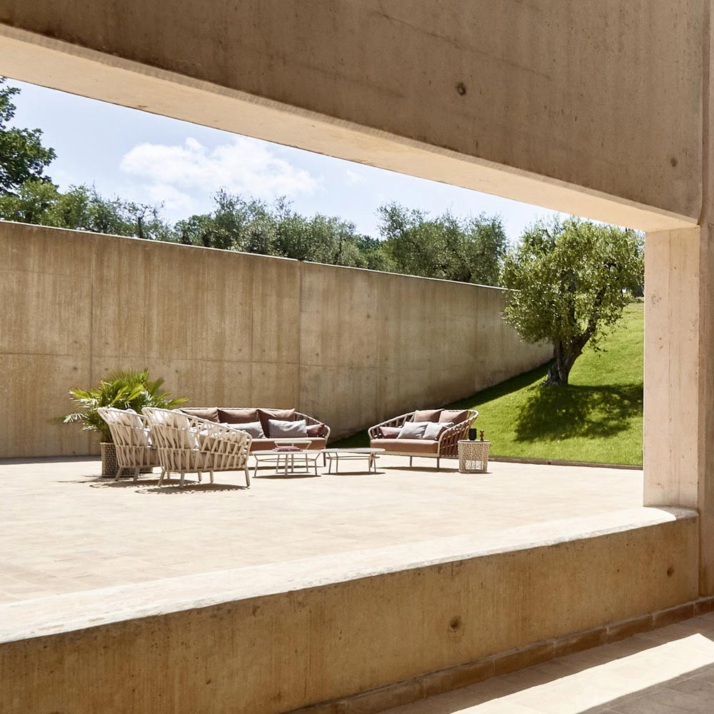 solução de mobiliário inovadora e fresca, enriquecida pelos maravilhosos acabamentos disponíveis que transformam o ambiente exterior com requinte. A sublinhar o lado funcional estão as