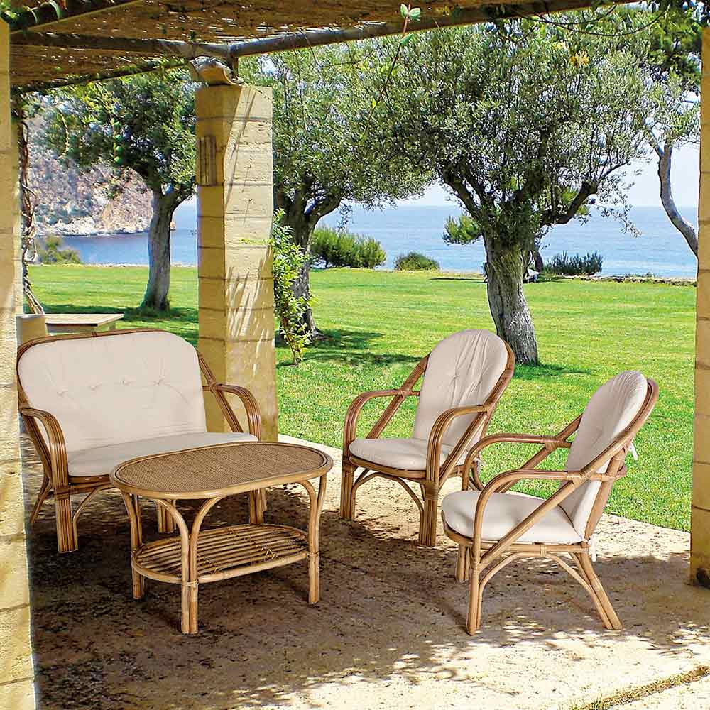 Poltrona de jardim de vime natural com almofada removível - Maurizia