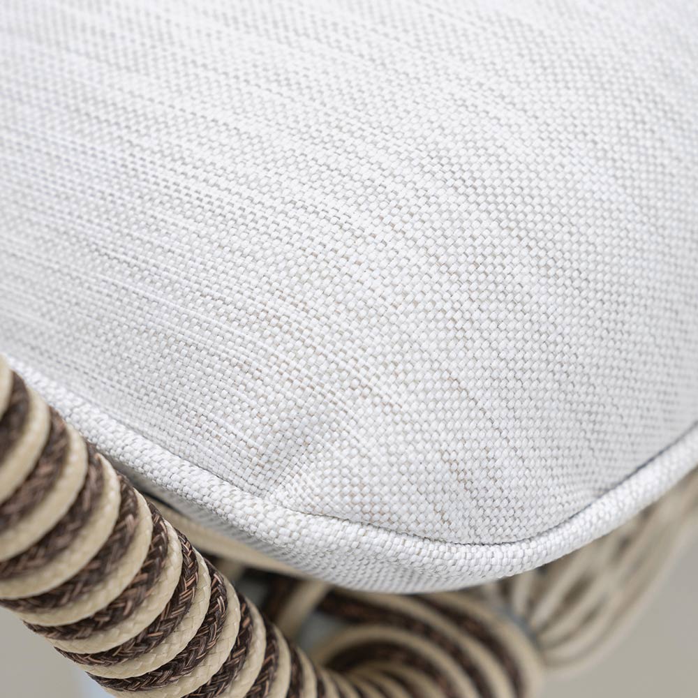 trama em Olefin/PP ROPE com acabamento bicolor branco pérola e cappuccino e almofada de assento e encosto em
