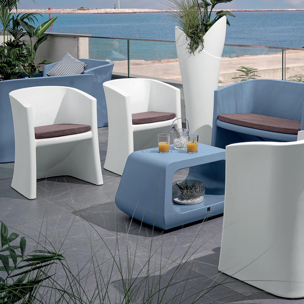 Esta poltrona outdoor inteiramente fabricada na Itália com estrutura em polietileno colorido foi pensada para quem busca praticidade e design ao mesmo tempo para um conforto quase envolvente .