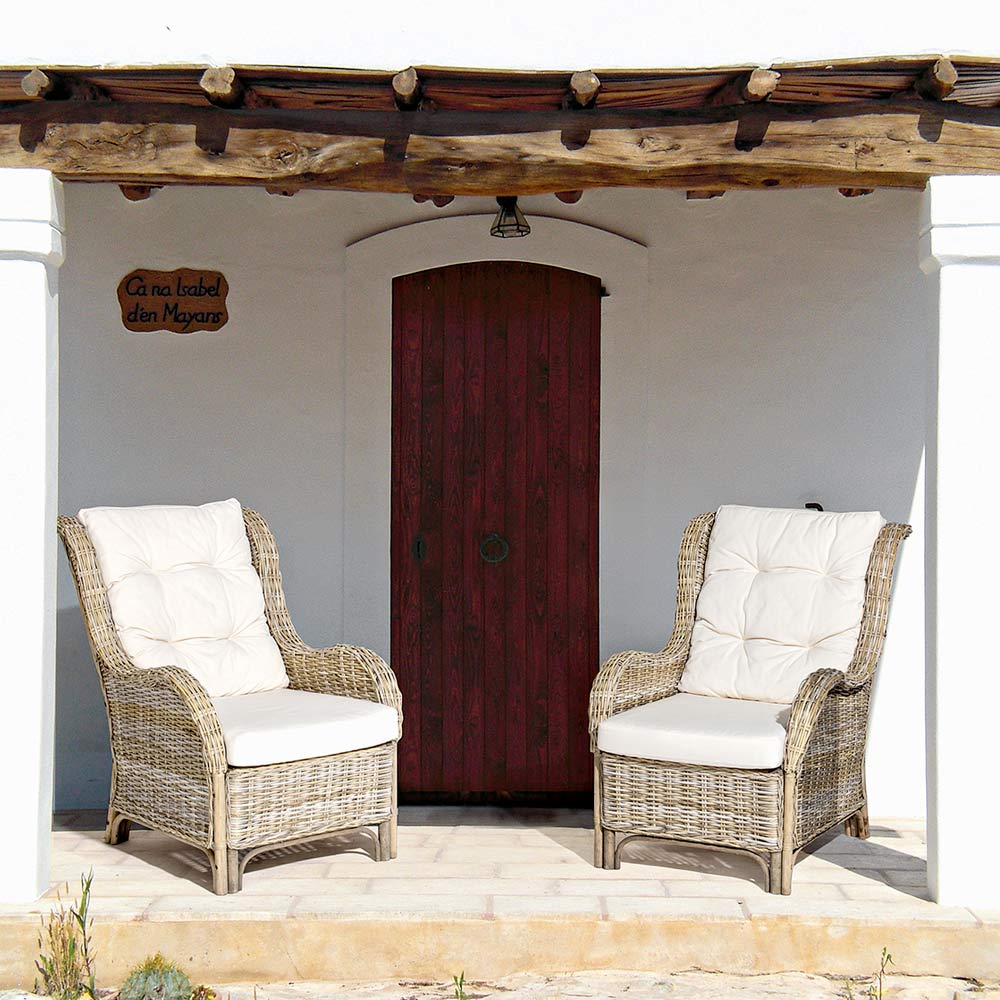Poltrona de jardim em rattan natural para exterior com almofadas - Supreme