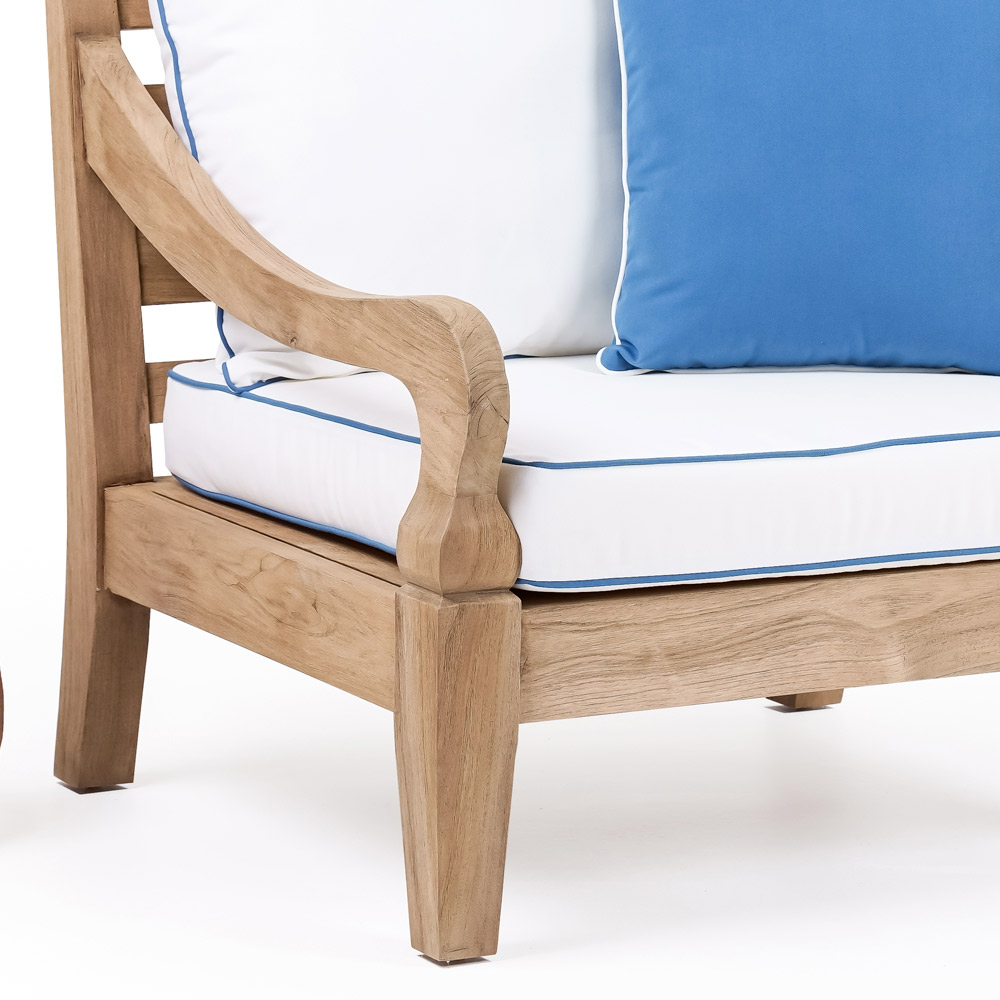 Cadeirão de exterior em madeira de teca natural escovada com almofadas acolchoadas