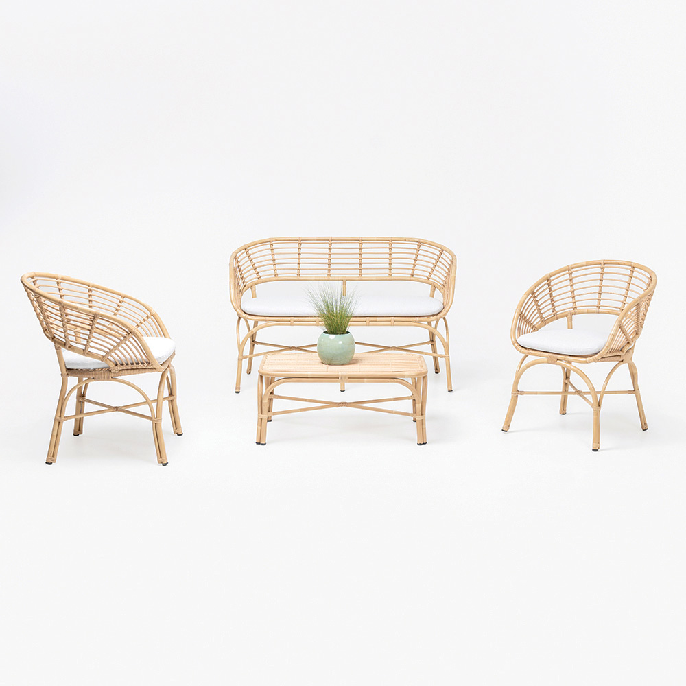 Esta poltrona de jardim de polyrattan é um exemplo de design leve e elegante que o convida a momentos de puro relaxamento. A sua estrutura, com as suas linhas curvas e a cor natural do polyrattan, evoca uma atmosfera de serenidade e simplicidade, perfeita para criar um canto do paraíso no jardim ou no terraço.